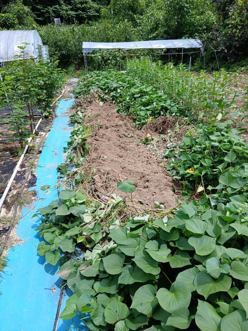 돼지가 고구마를 싹쓸리했습니다 그래서 나머지는 보호 하고자 울타리 작업을 하니까 더운날씨에 고생했어요