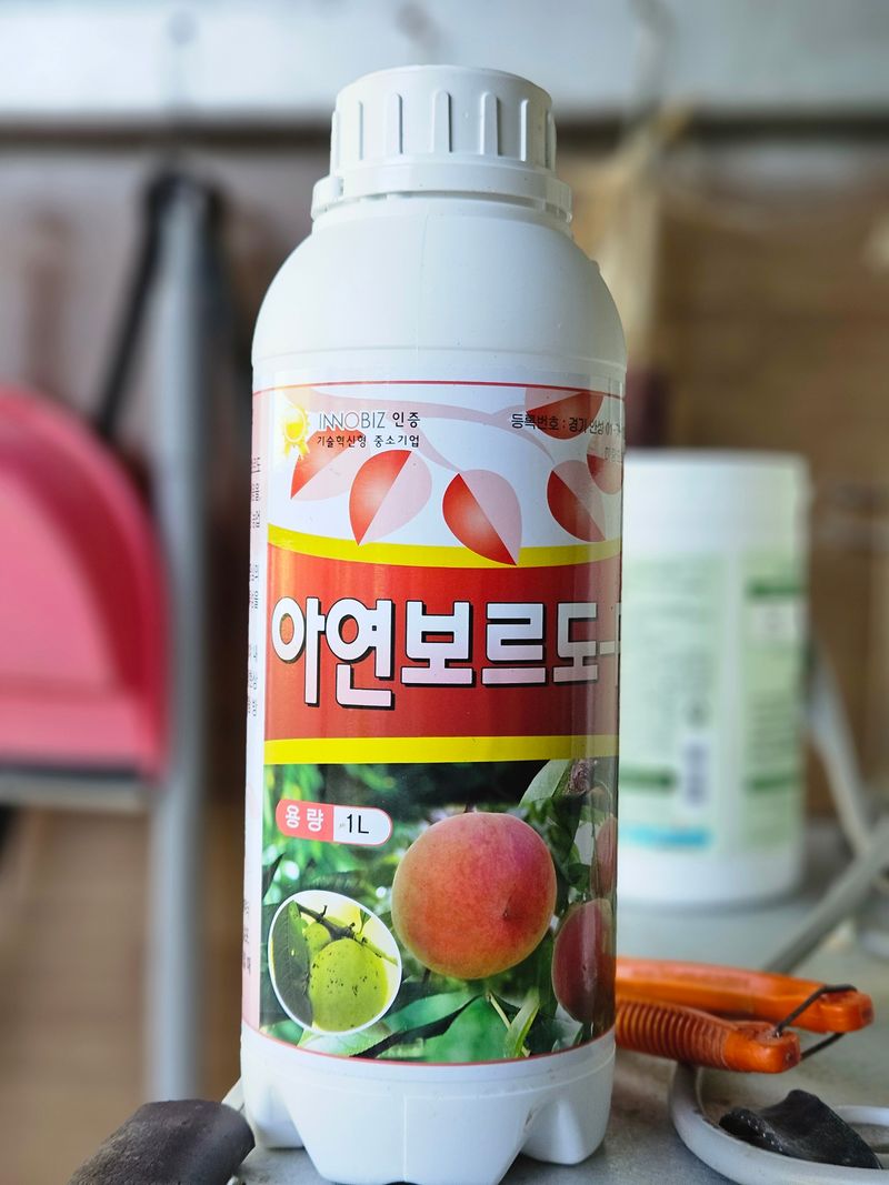 자두1차방제 스마트(살균)세균구멍250g 팡파레에스(살충) 진딧, 깍지. 노린재250ml 리무진(살충)심식나방200ml 슈퍼빅5(영양)미량요소비료1L 물450ml 희석살포
