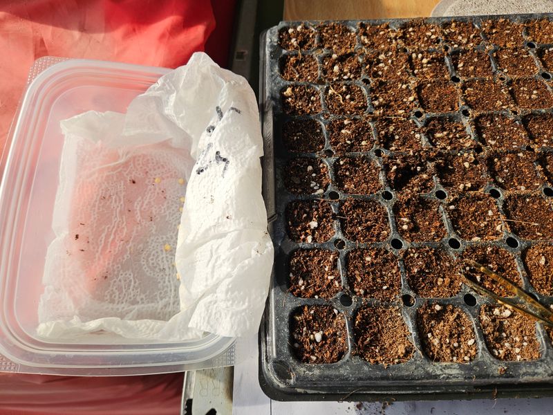 고추싹트운모종 포터에 심기