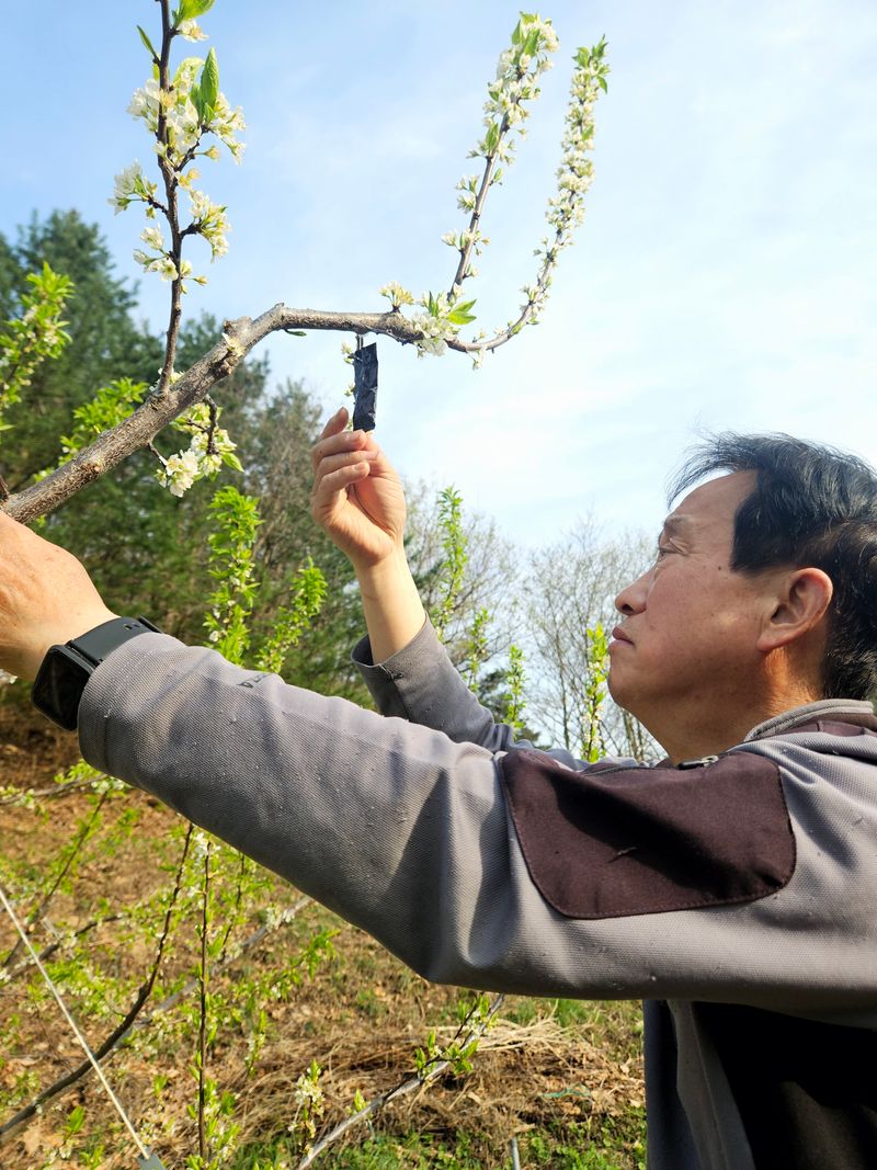 자두 늘어짐방지 묶음줄, Y자 받침대작업