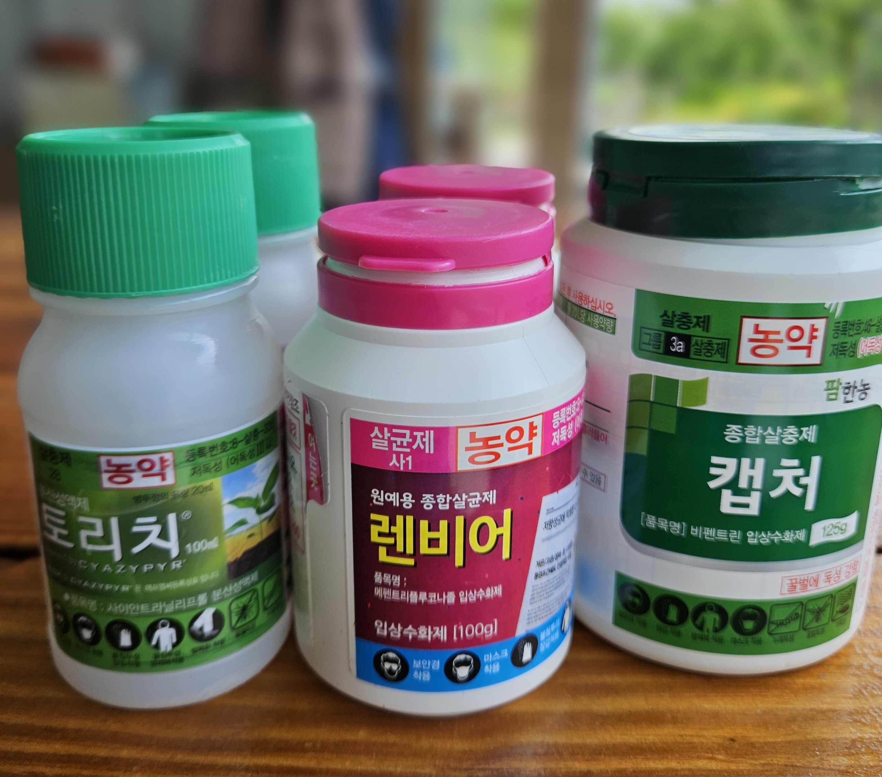 6차방제 렌비어100g×2(잿빛무늬병) 토리치100ml×2(순나방) 캡처125g(순나방,노린재) 물 16말에 희석하여 방제