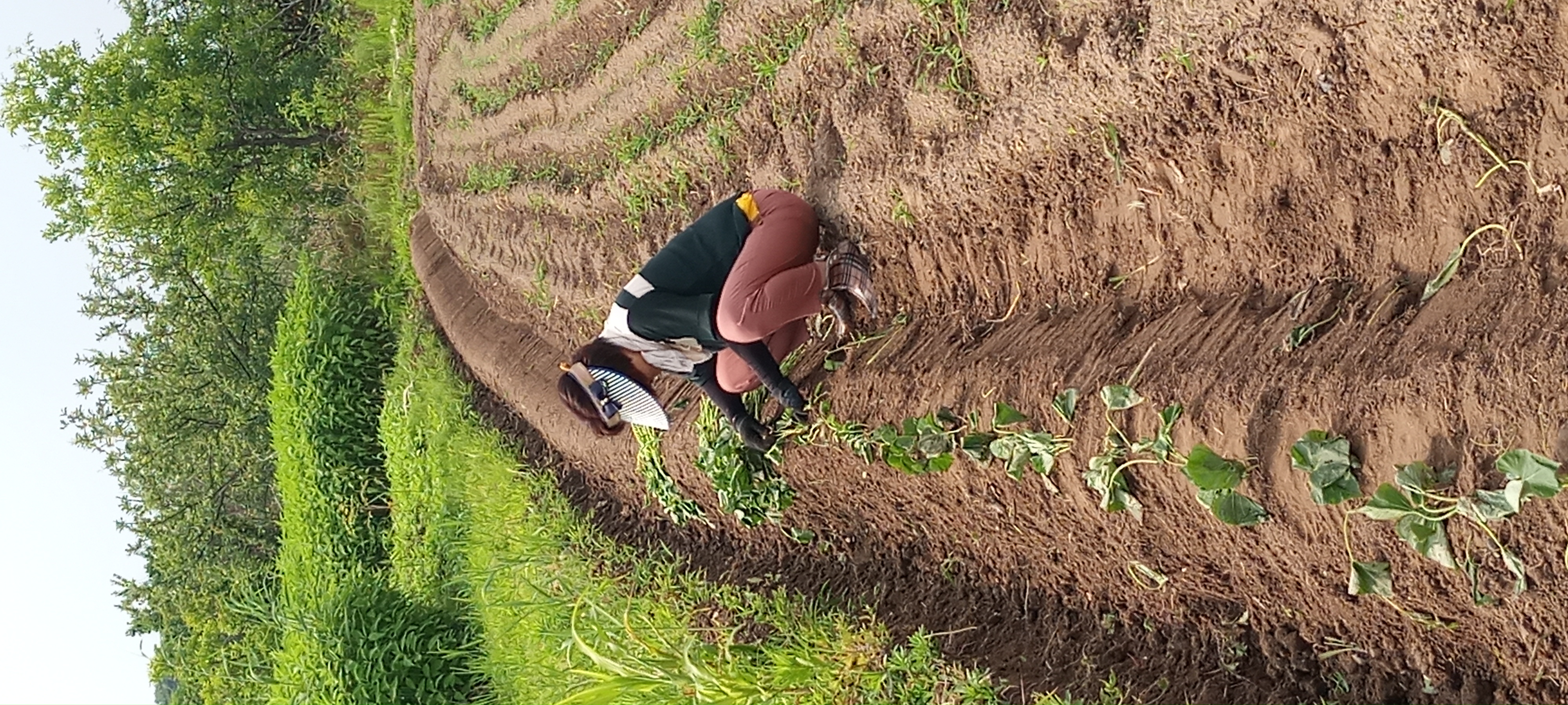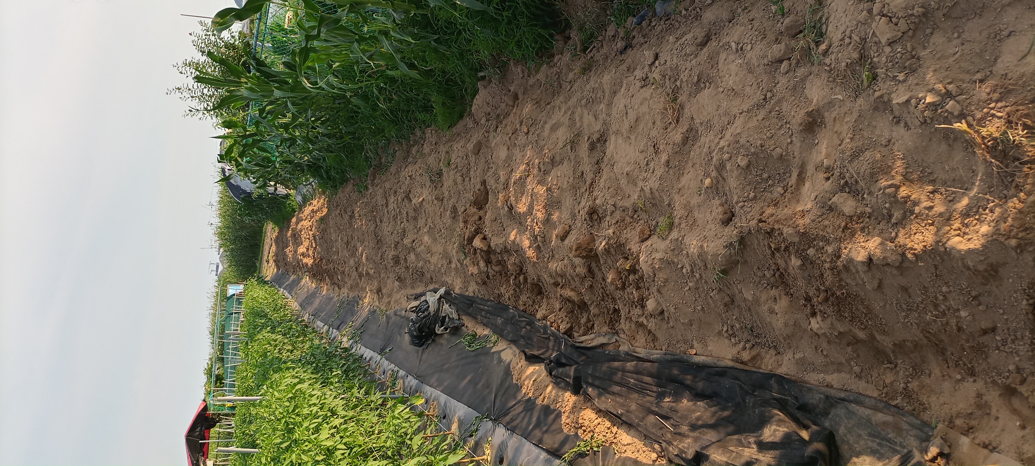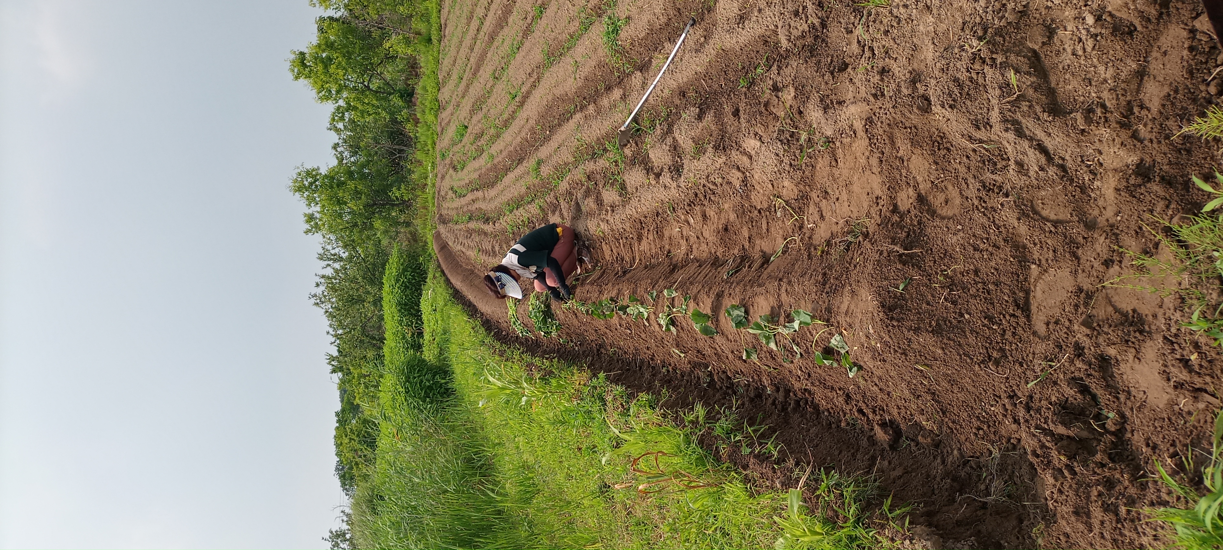 고구마 심기 우리 가족이 먹을거라 서리태 심을 밭 한쪽에 한골 만들어 밤고구마 모종 한단을 심었네요