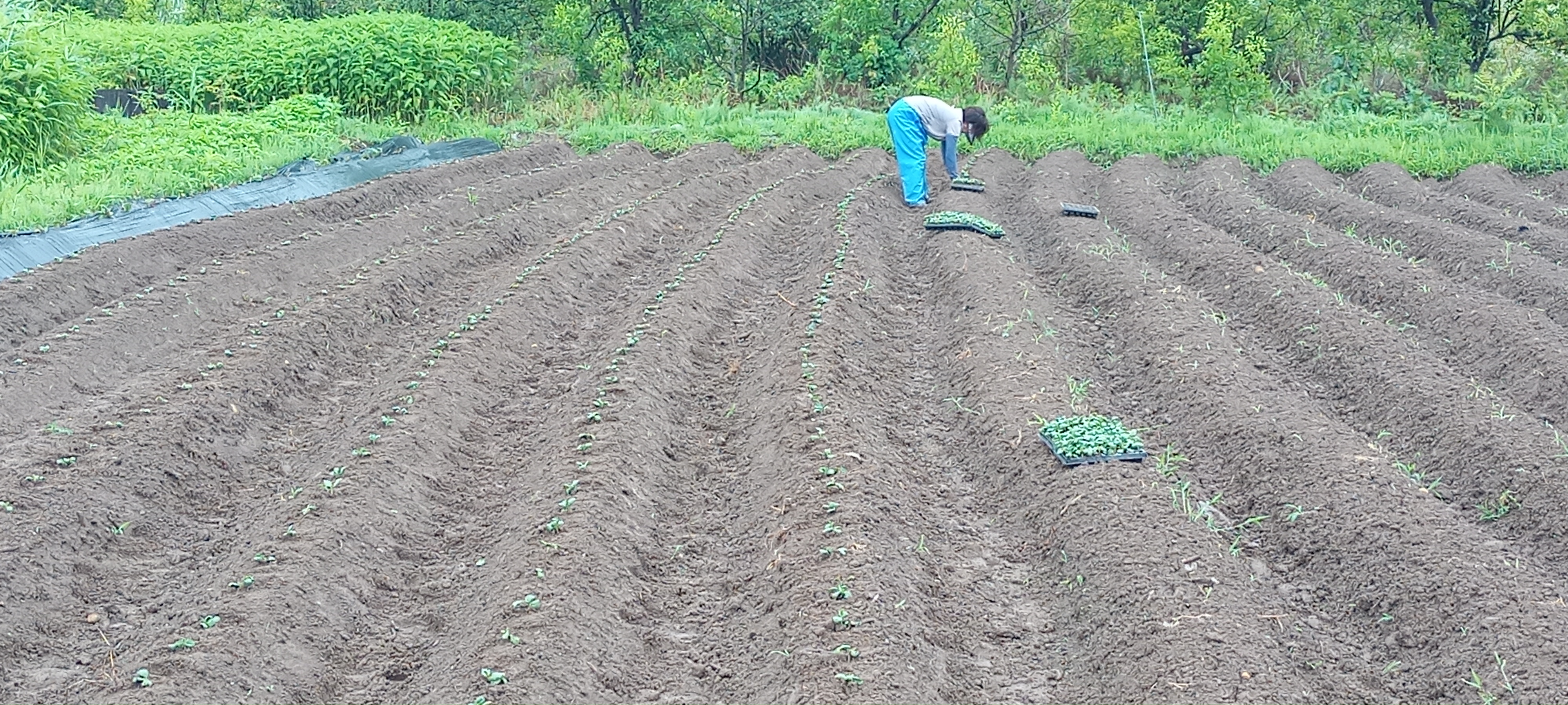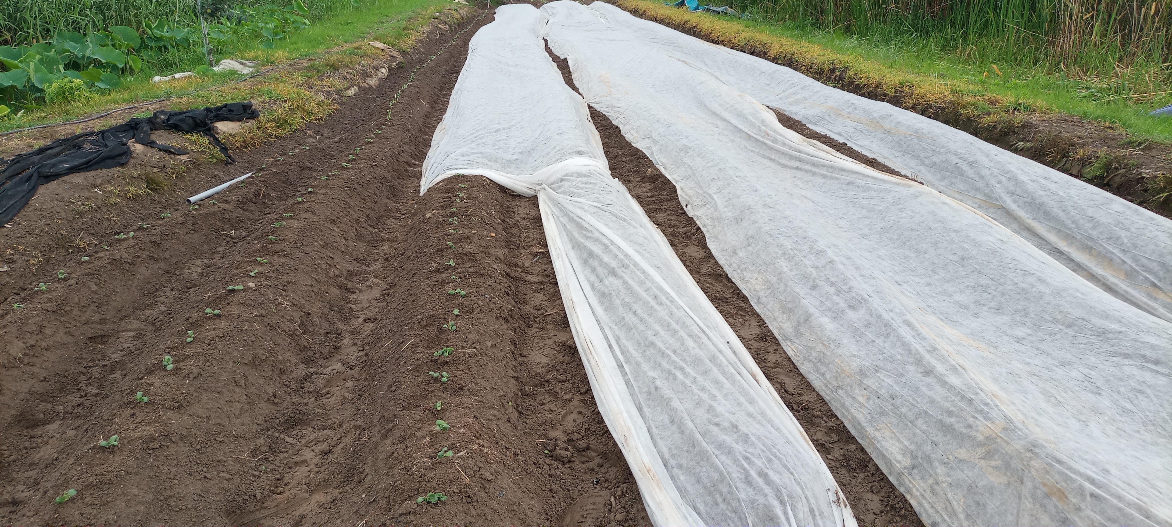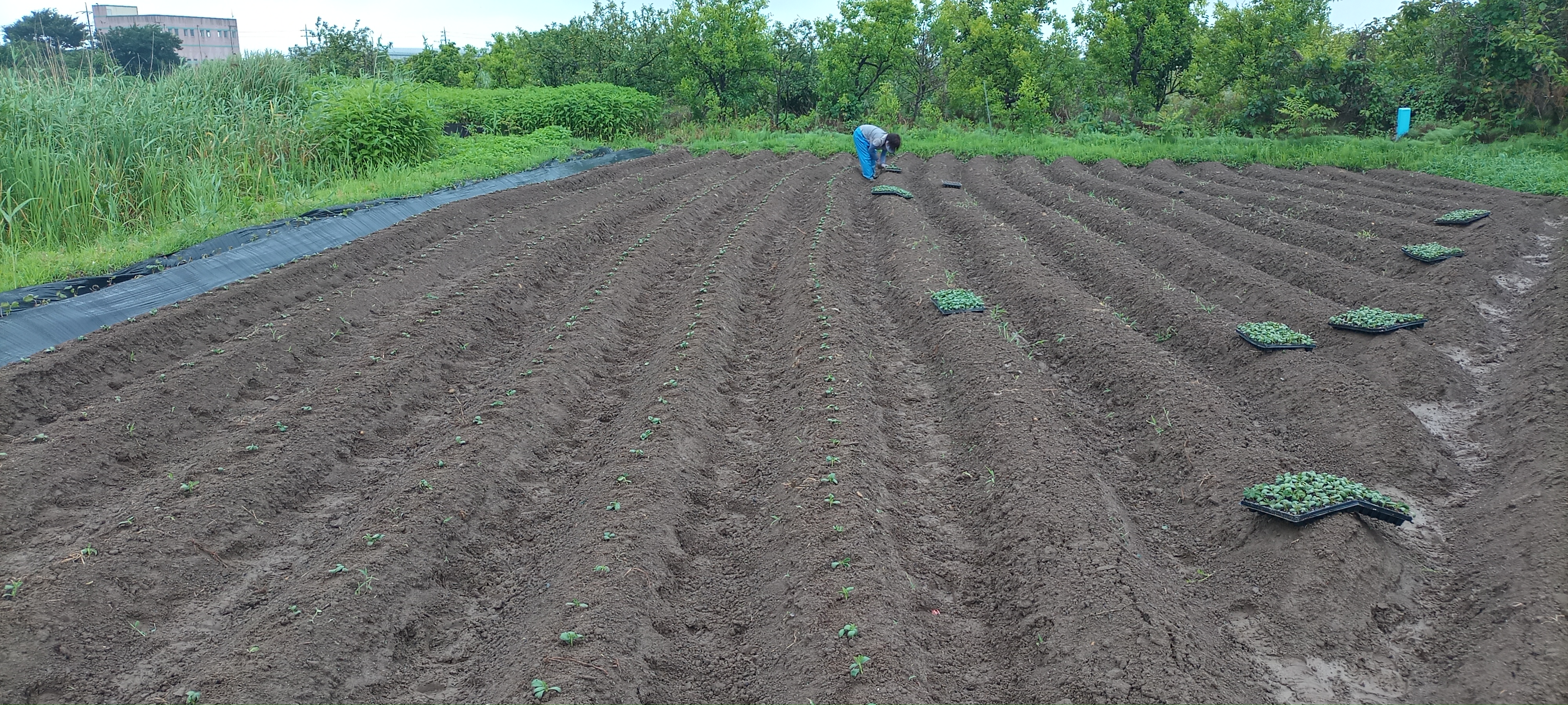 서리태 모종 노지 정식 모종이 모자라 일부는 파종처리하고 조류 피해방지위해 부작포로 덮었슴