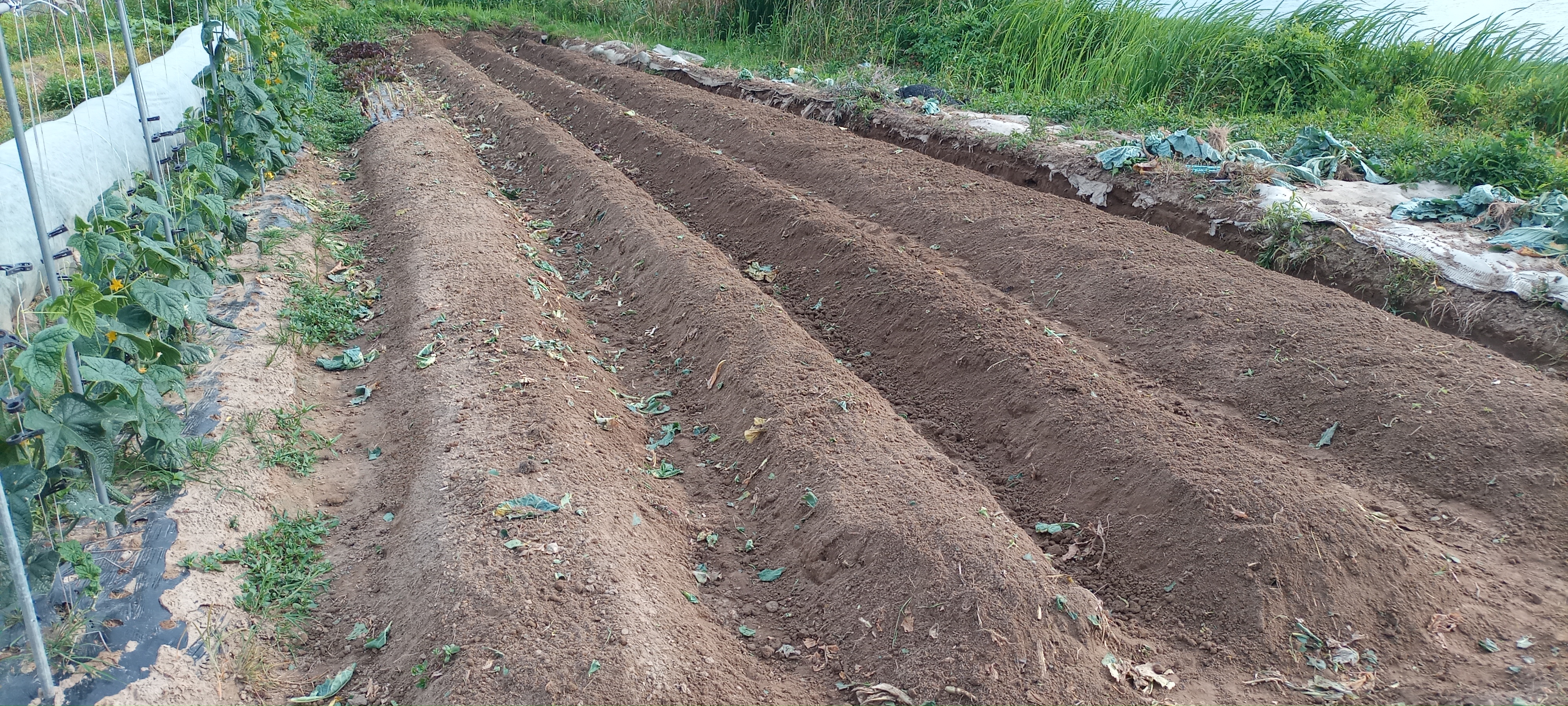 야채밭 정리.및 다음 채소재배위한 로타리작업, 두둑만들기