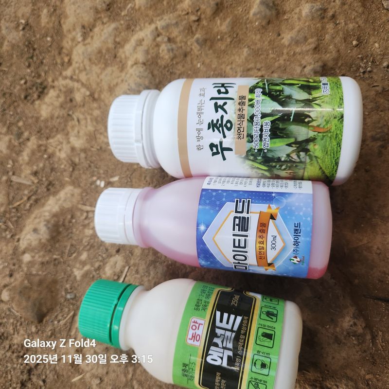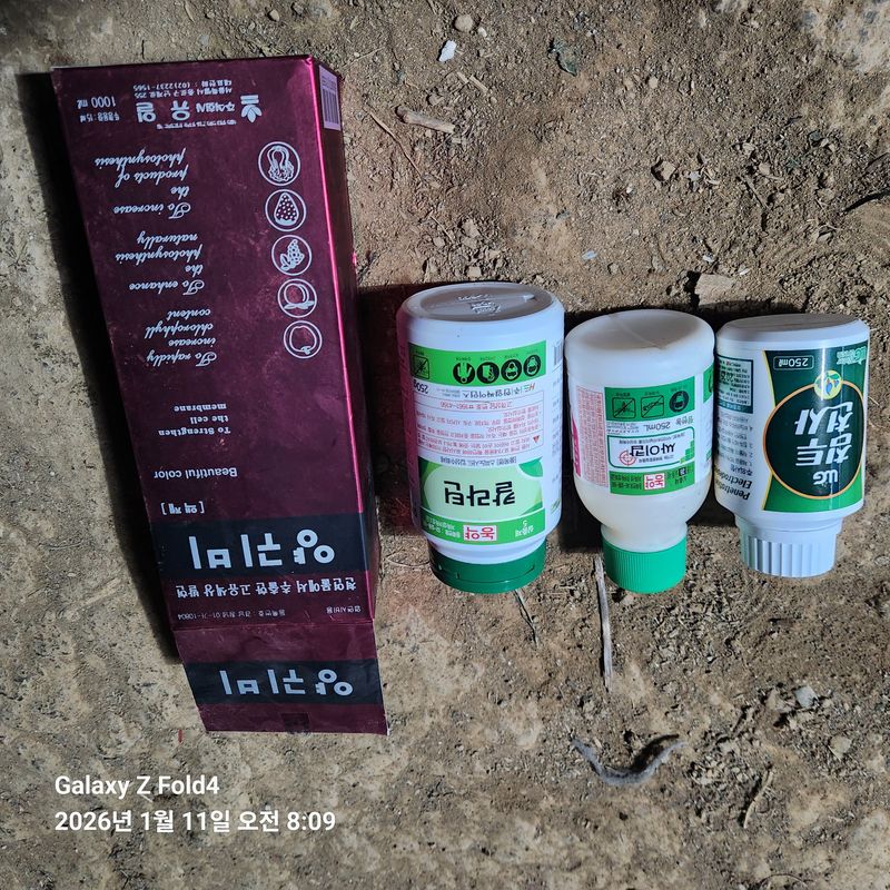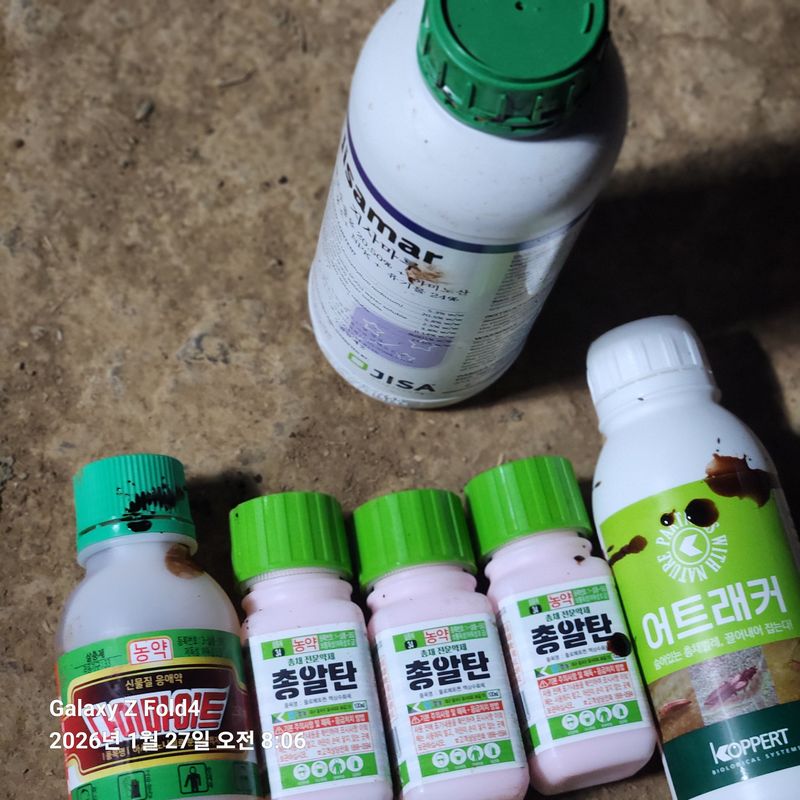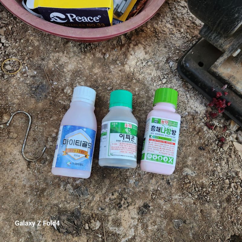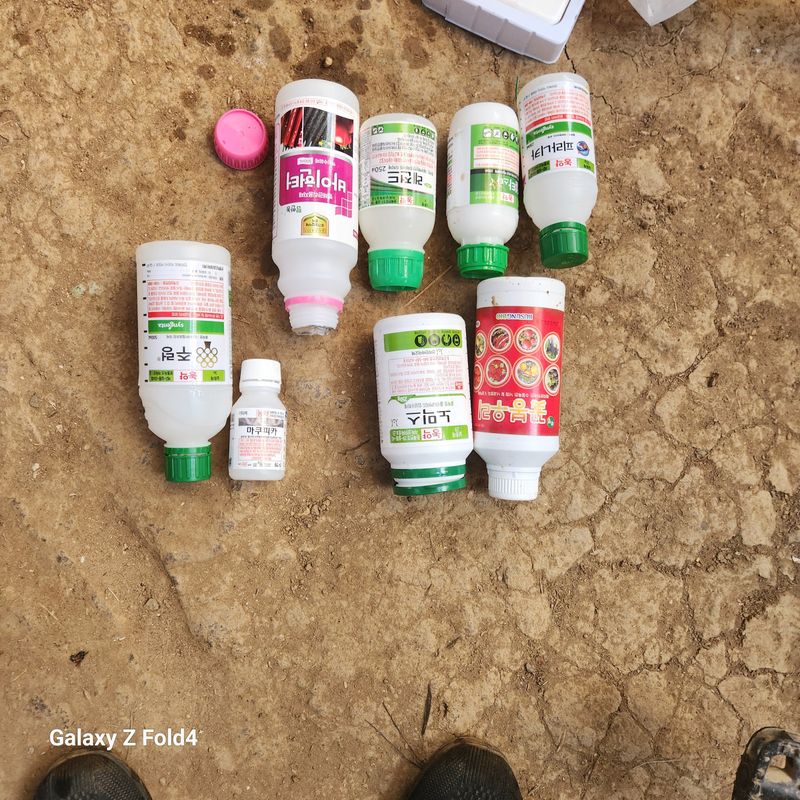 1동서울꽈리3500개옴. 우회거100 개 징가탄2/3 물200 L희석후 사용