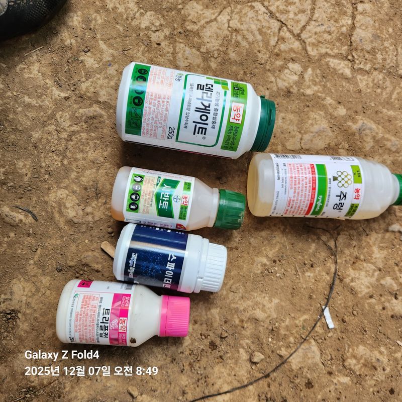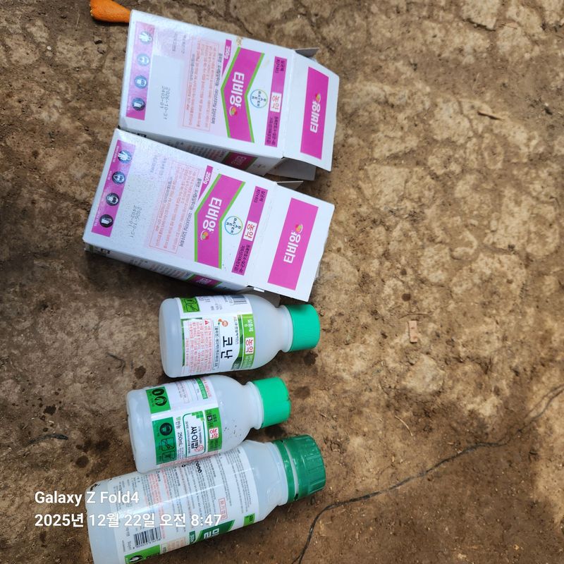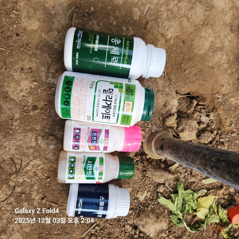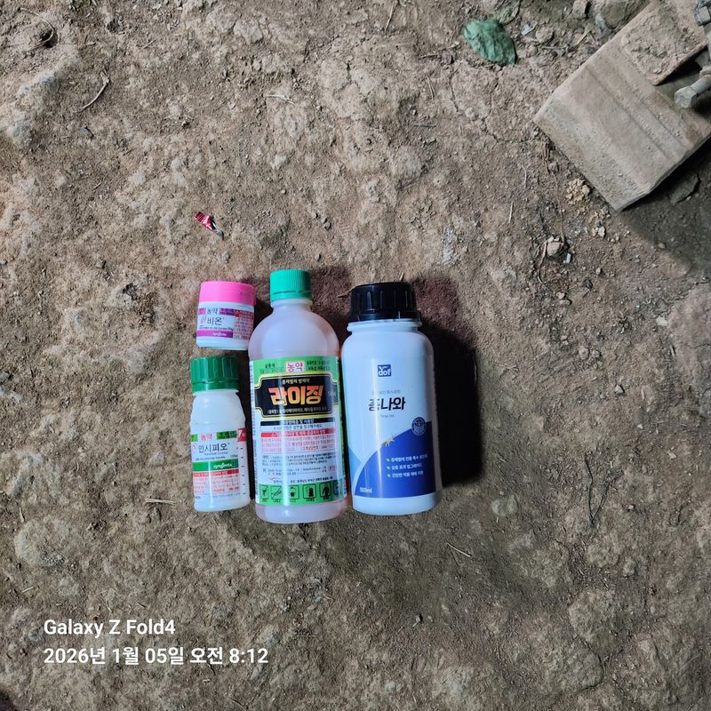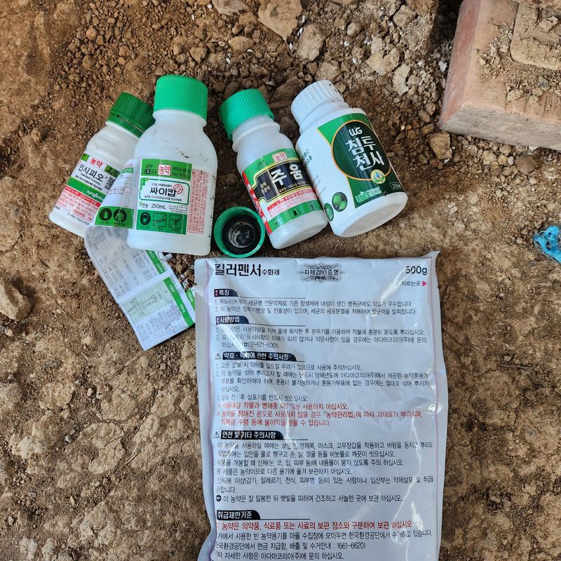 1동서울꽈리3500개옴. 우회거100 개 징가탄2/3 물200 L희석후 사용