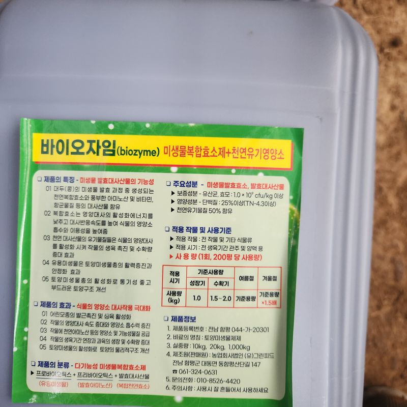 3동물 바이오자임관주 반 정도 미생물 2동약