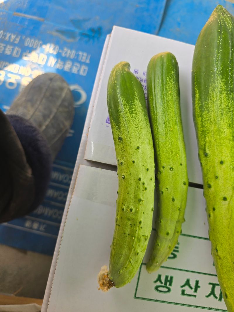 어제 오이첫납품 개당600원 특. 상 54박스 특은 갯수50개로 하니 1.2키로 추가됨 시중시세와 동일 상만 4-5천원 높음 54개중 상비율은15개에서 20개 사이가됨