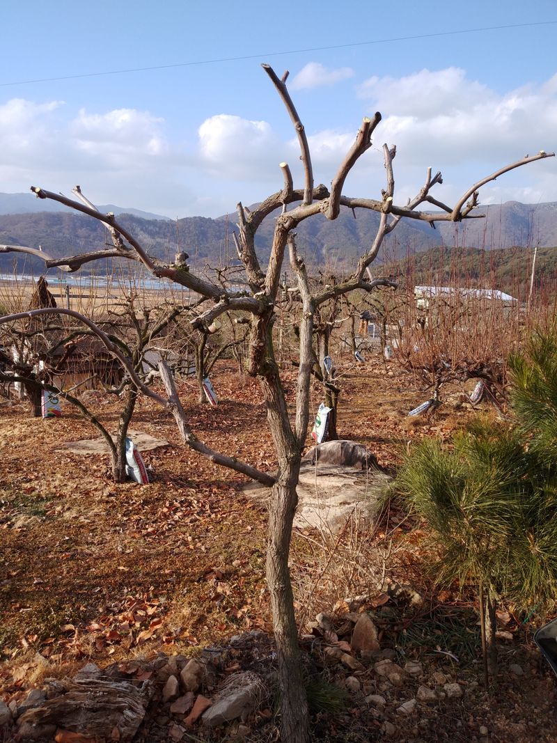 매실과 감나무 사과대추 일부 가지치기 작업함.