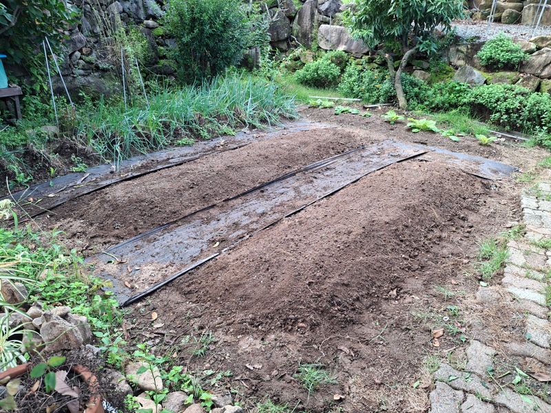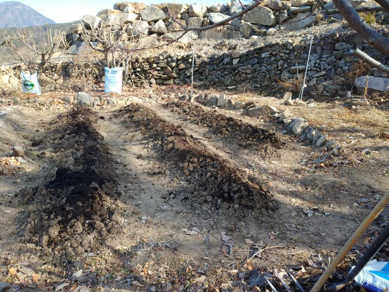 고추밭을 갈무리하고 마늘밭을 준비했다. 두고랑이면 약다섯접 될지... 토양살충제로 모캄을 넣고 석회/퇴비를 밑거름으로 섞어 넣었다. 복합비료 와 고형퇴비도 섞어 주었다. 다음주쯤 비닐멀칭 예정이다.