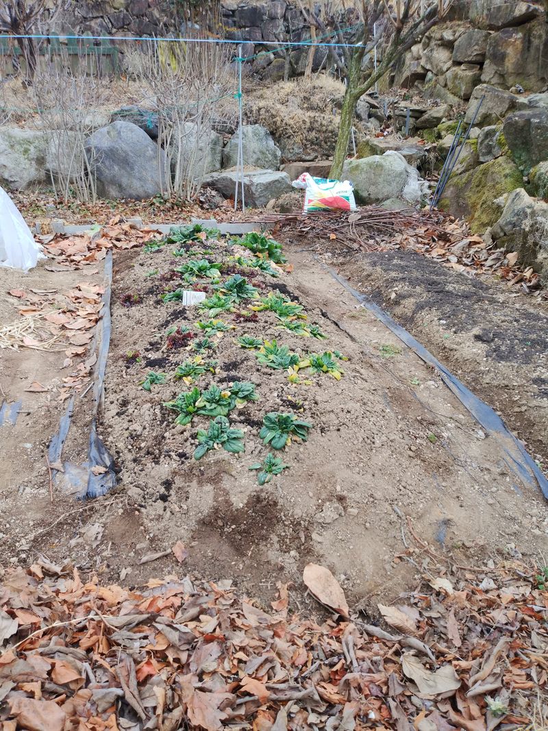 상추 시금치 부직포 비닐 벗기기 작업후 퇴비치기 작업.