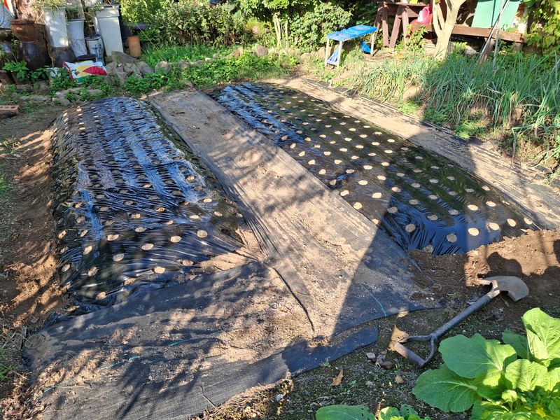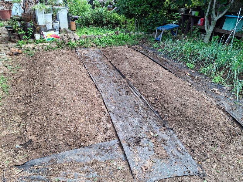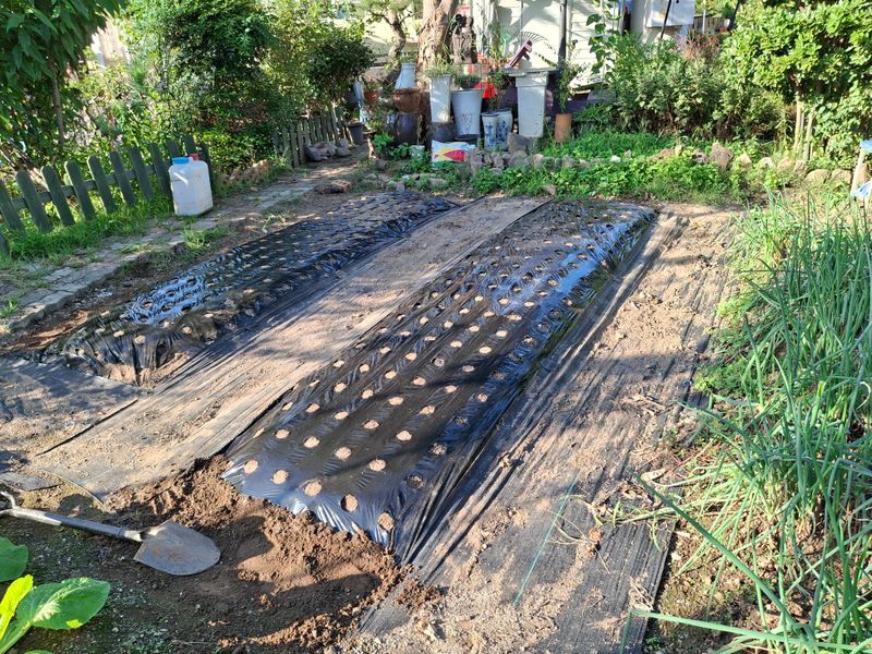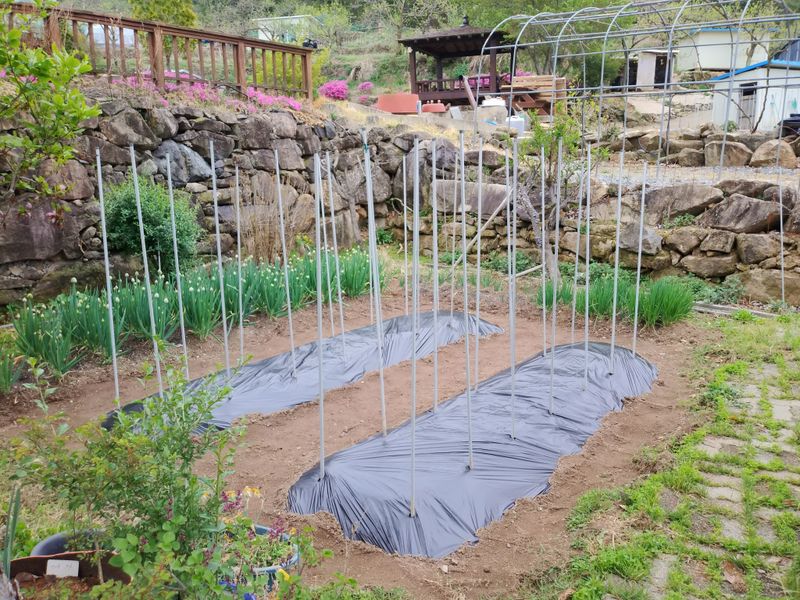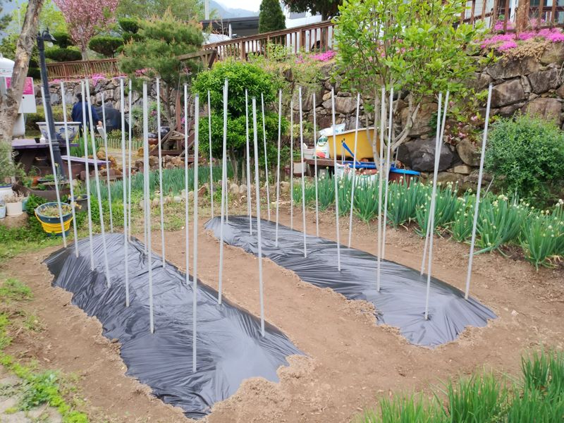 2025년 마늘밭을 만들려고 퇴비와 토양살충제를 미리 섞어 만들어논 밭에 어제도 비가오고해서 오늘 8구짜리 유공비닐로 멀칭을 했다. 7구로 45줄정도 될것 같다. 오늘 하루종일 마늘을 까고 분리해서 종자 약350개 정도 준비했다. 종자소독을 하려고 석회 유황과 50...