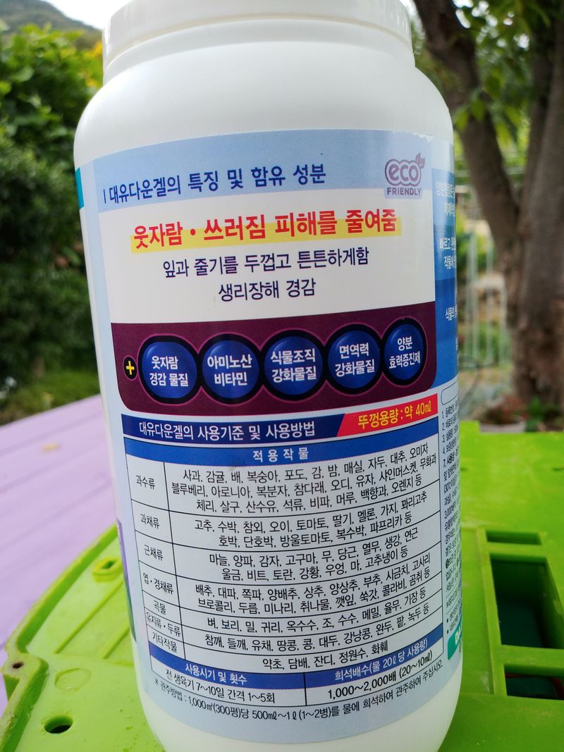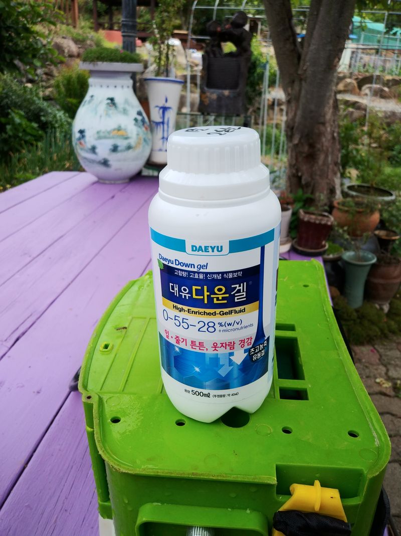 인산가리 옆면시비를 하려고 대유 다운겔 500ml 한병을 구매( 18천원 )해서 시비를 해주었다.