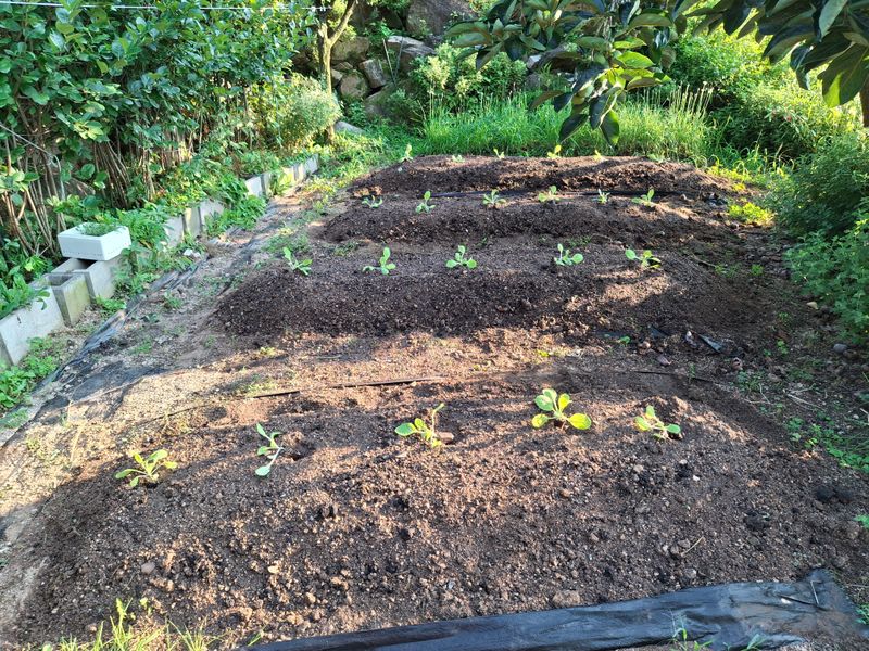 밤에 비가 조금 내려 주었다. 어제 무파종과 쪽파씨를 심었는데 하늘이 적극 도와 주신다. ㅎ 배추모종 심고 그간 가물어서 물주고 신경많이 쓰였는데...