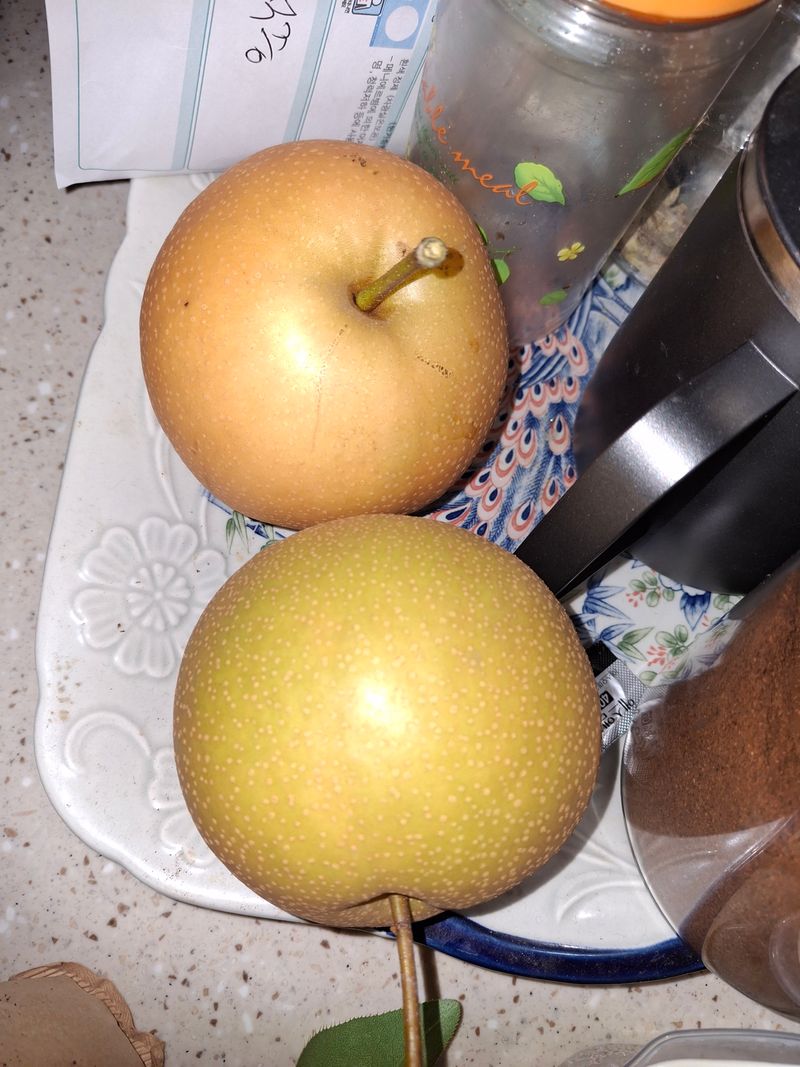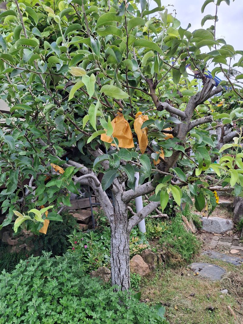 배나무가 두구루 있는데 봉지씌워 놓았는데 오늘아침 보니 새가 쪼고 떨어뜨려 놓았다. 그래서 2개 수확해 보았더니 한개는 잘익은거 같고 한개는 아직 색이 덜 노래서 추석즈음까지 기다려 봐야겠네요.