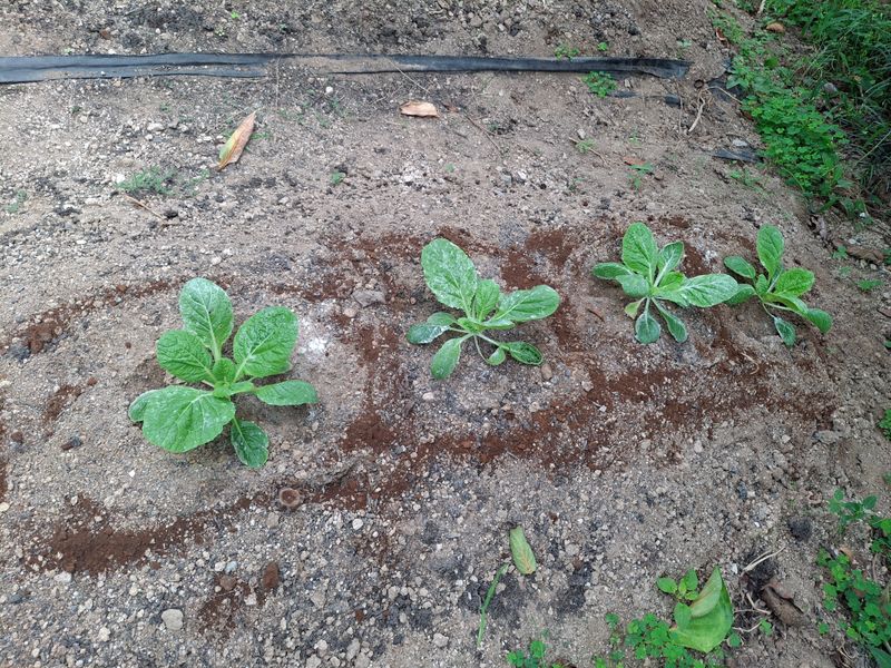배추 불암3호 반판 6천원에 푸른육모장에서 그제구입하여 오늘 오후 4시반지나서 옮겨 심었다. 심은후 하얀가루 벼룩벌레약 엘산을 뿌려 주었다. 약45포기 심고 4포기 여분으로 남겼다.