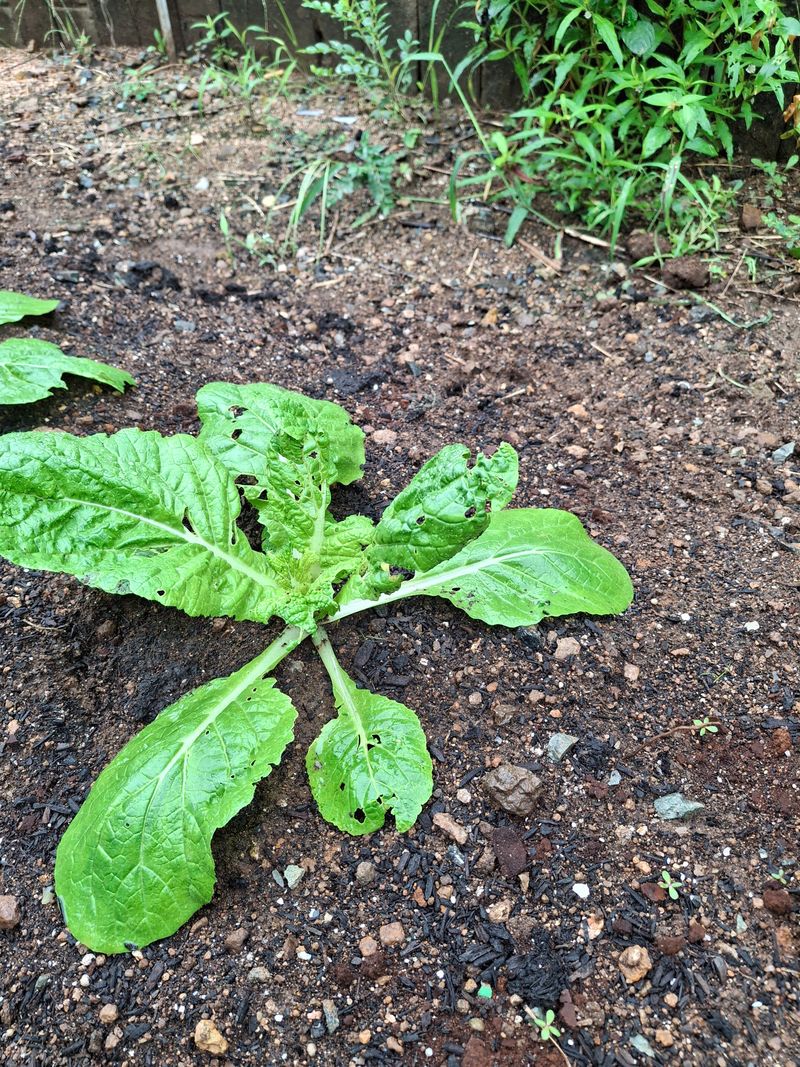 비온후 김장배추의 자라는 모습이 흥미롭다. 벌레와의 전쟁?을 해야 할 것 같다.