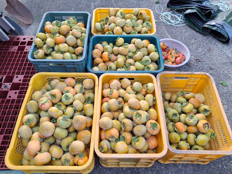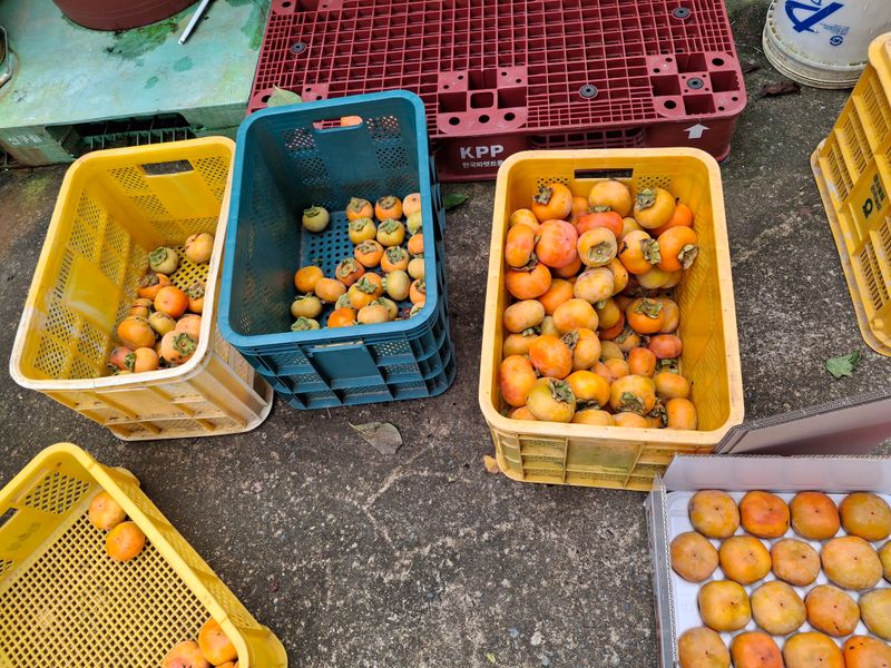 감따기와 박스포장하여 출하작업을 하였다. 11박스는 농협출하하고 8박스는 로젠택배로 개인 출하 했다. 3박스는 숙성하여 출하할려고 창고보관하고... 나머지는 한데모아 감식초용으로 숙성시작 했다.