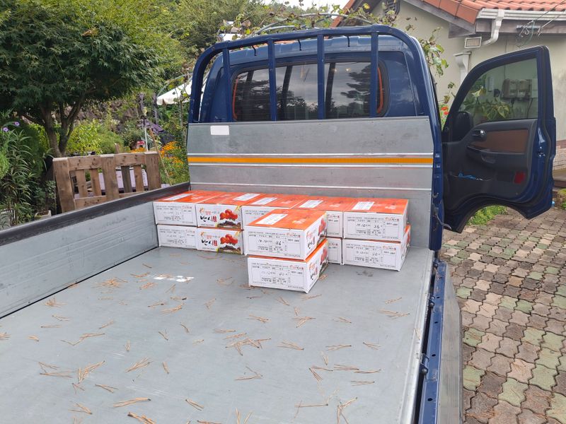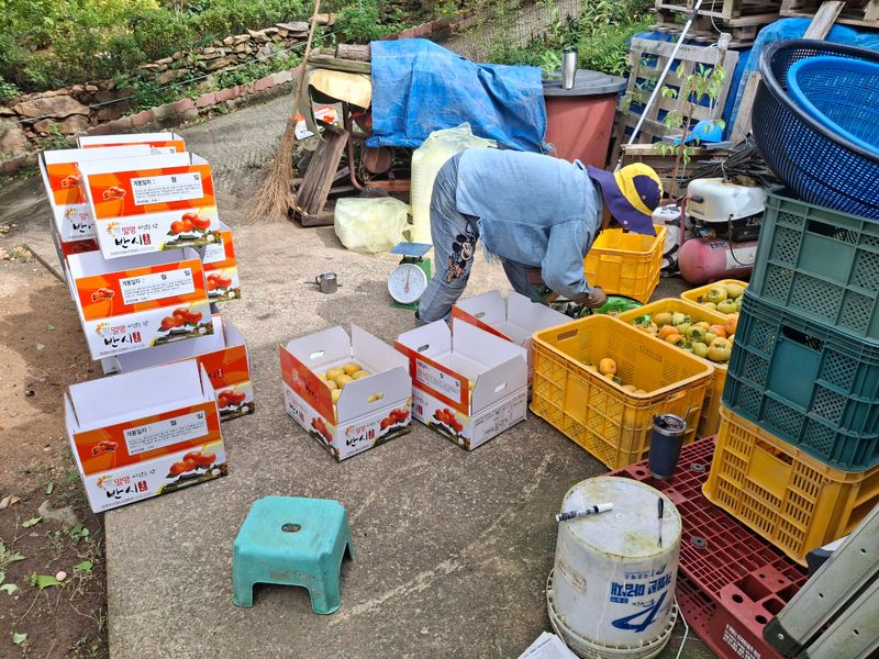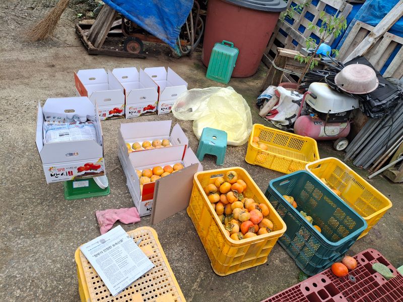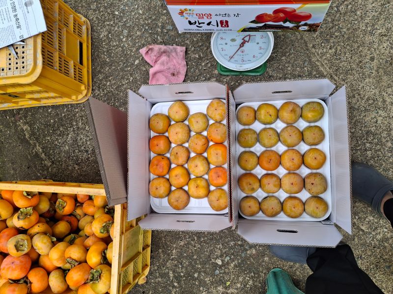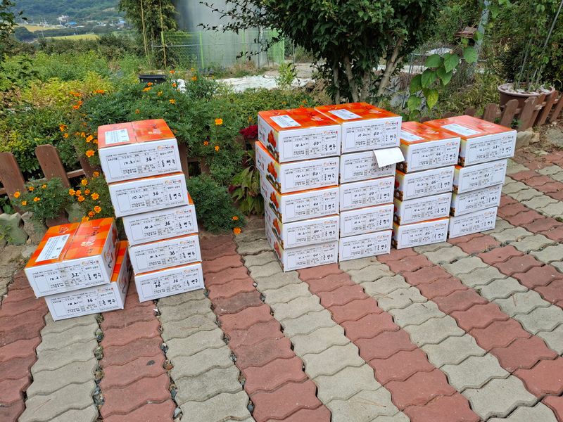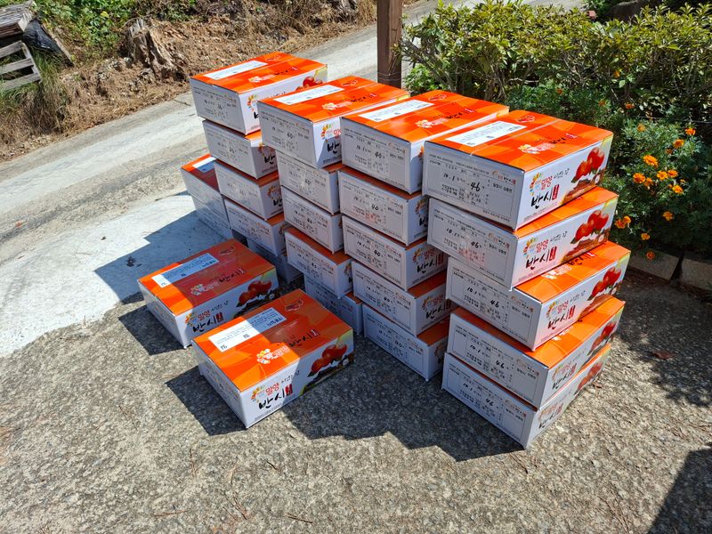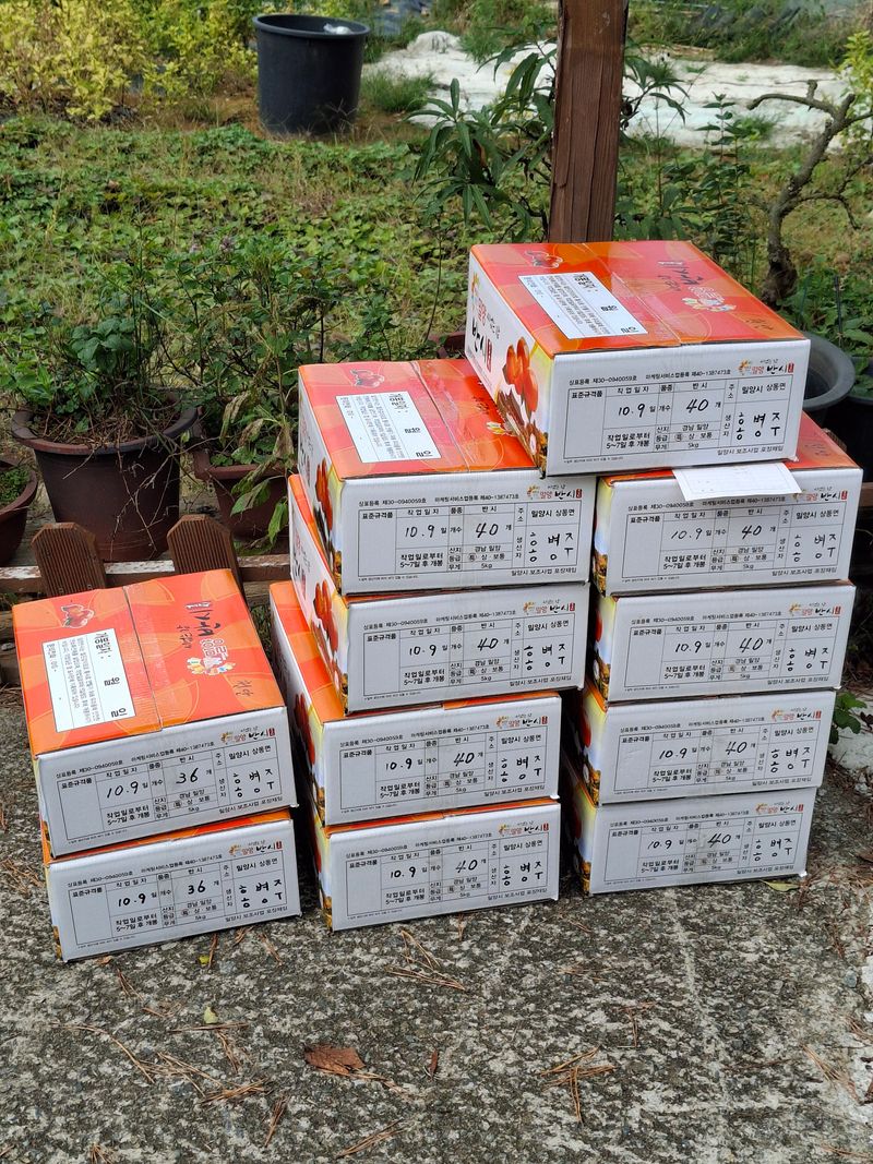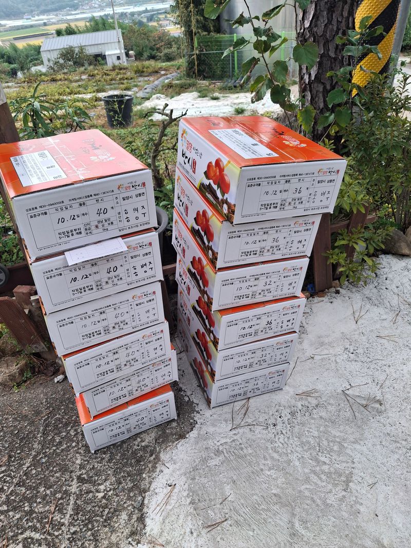 감포장 출하작업과 감따기 작업을 하였다. 5트레이 정도 땃는데 아랫밭에는 벌레가 많이 있다. 방제약이 잘 안들어 갔는지...ㅠㅠ 12박스는 농협공매 출하하고 12박스는 개별 편의점택배로 접수했다.