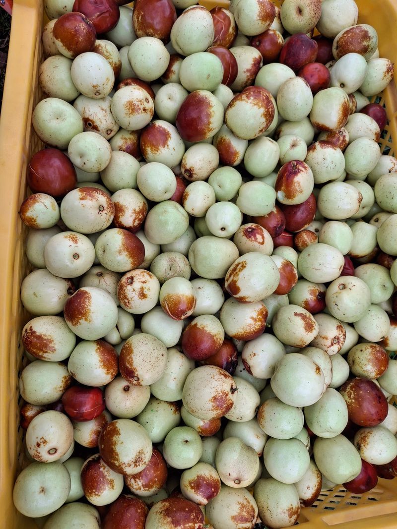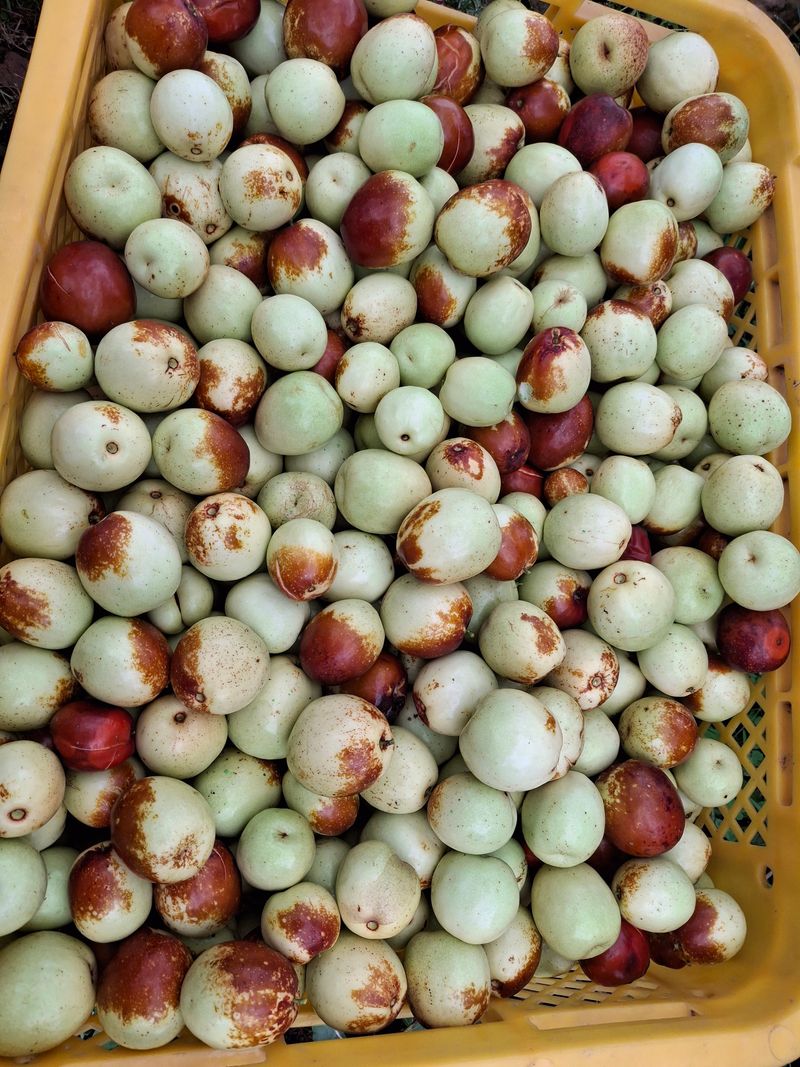 사과대추 수확했다. 주먹만한 크기가 탐스러운데 낙과하기 시작한다. 트레이로 가득 하나만 우선 했다.