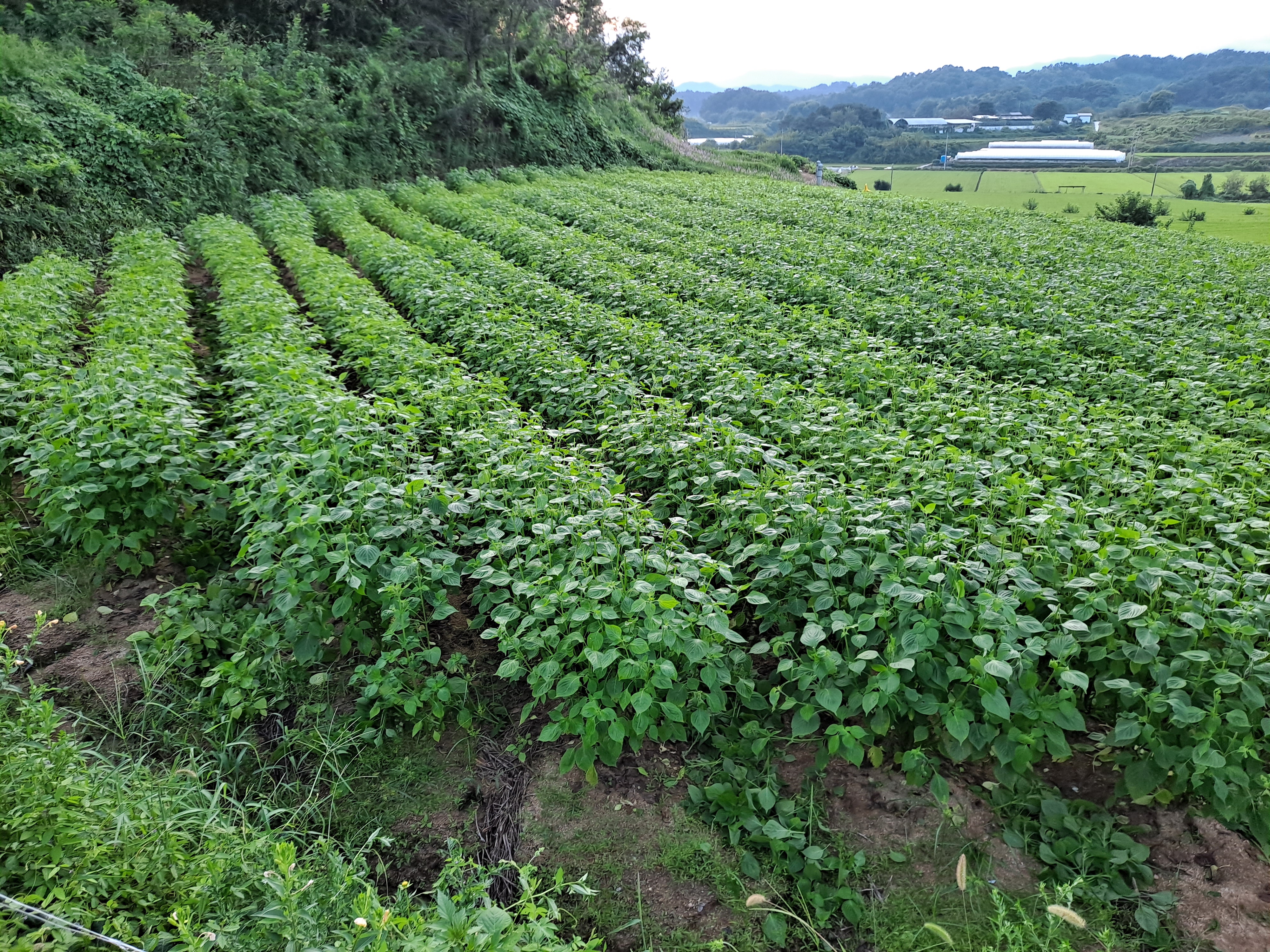 황산가리 헛골에 뿌리고 멀칭비닐때문에 발을 못내고있는 발이잘내리도록 하였다