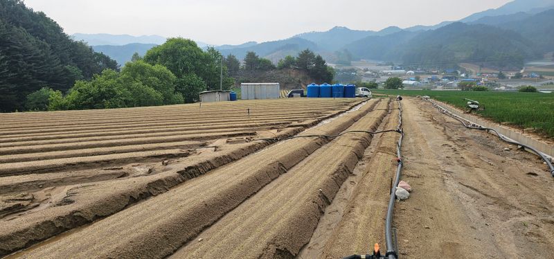 안골. 추비(4포) 치다가 모자란 골이랑 비료가 좀 적게 치였다 싶은곳은 nk21 (1포 반)으로 마무리.