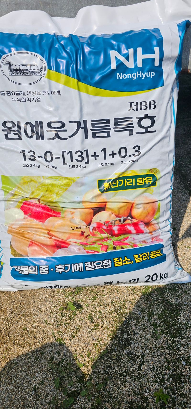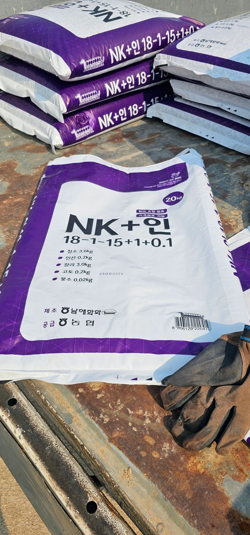 비료 살포 하고자 아버지께 여쭤보니 nk 1포 치라고 함./ 뒨짓골 차돌리는곳 작은파밭 구매한건 팜한농/파워성장엔 추비 플러스[18]1-9+2+0.3