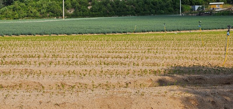 뒨짓골 컨테이너 밭(맑고 바람 쎔 4m/s) 스프링쿨러 설치 완료.