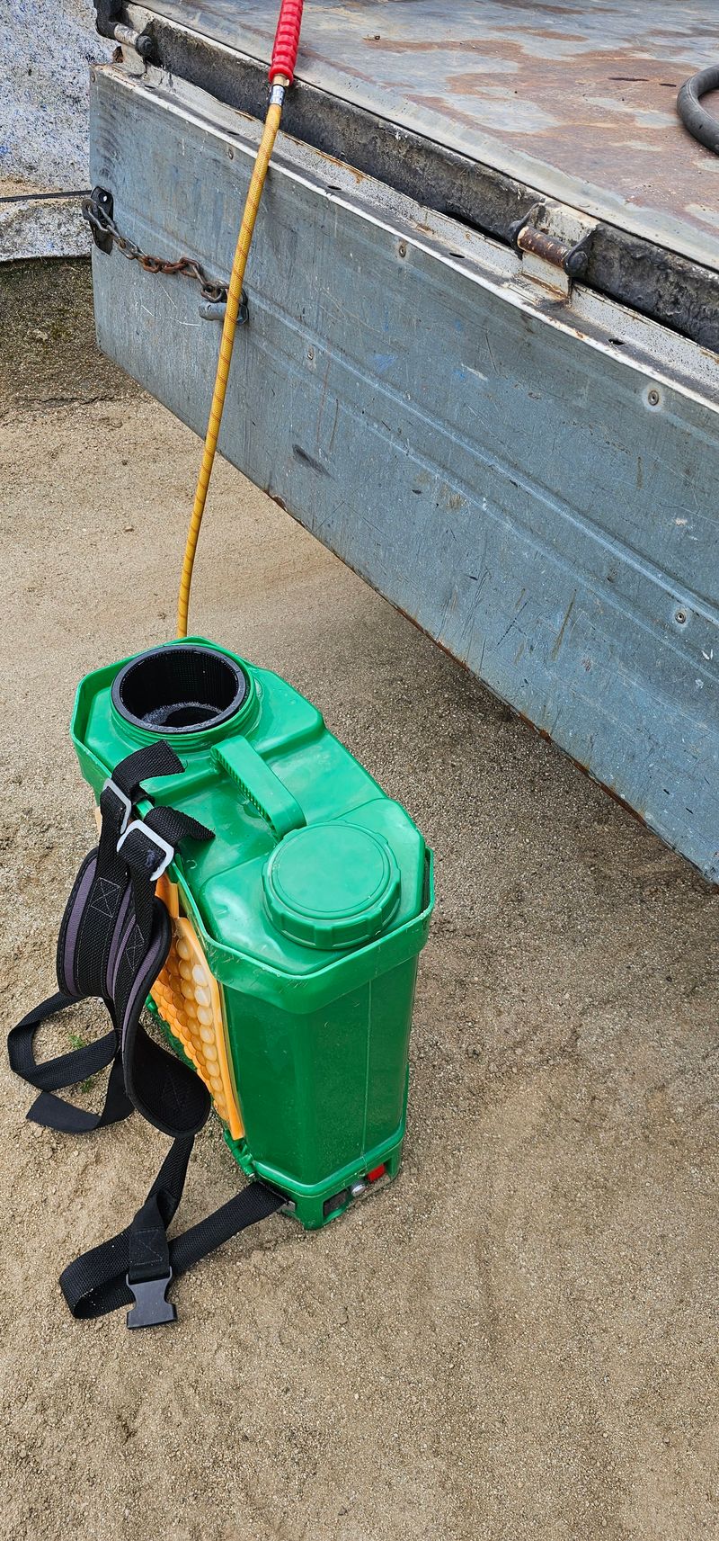 제초제 분무(바스타 350미리+나브 50미리) 안골 윗자리 목책기 기계있는곳부터 위로 출입문쪽으로 위로 올라가며 제초제 치는중