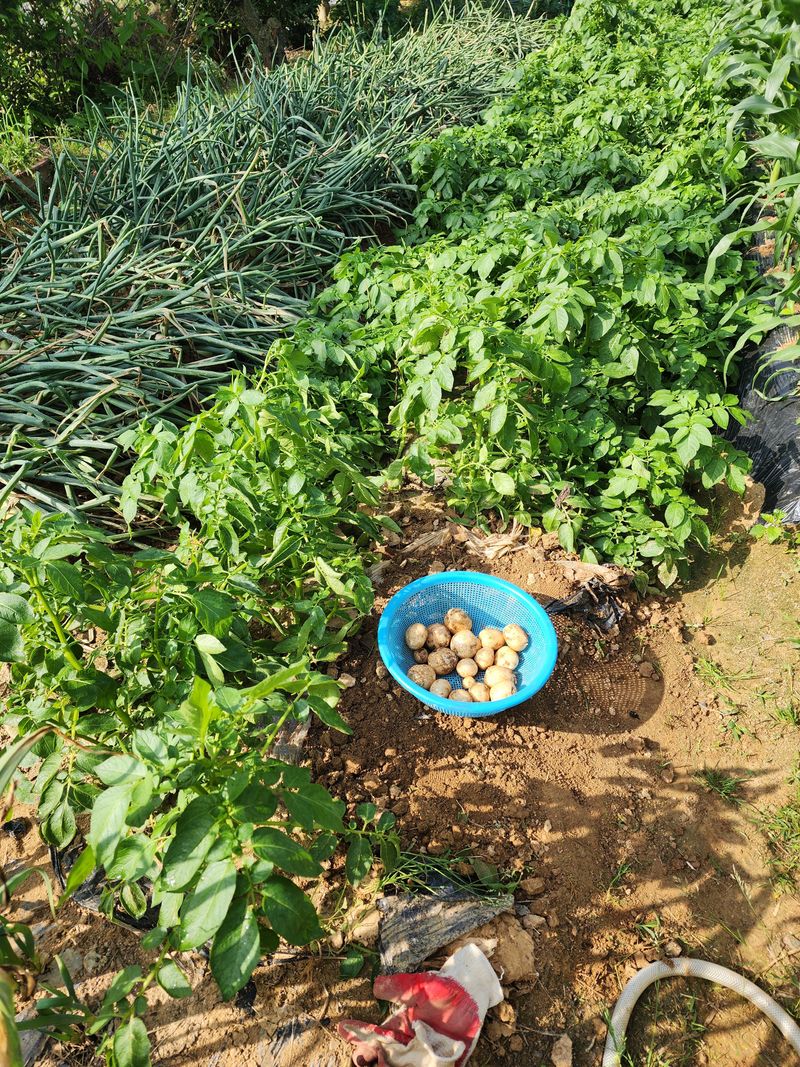 비가 와서 대서마늘 추비로 요소비료 약간 뿌렸읩니다.
