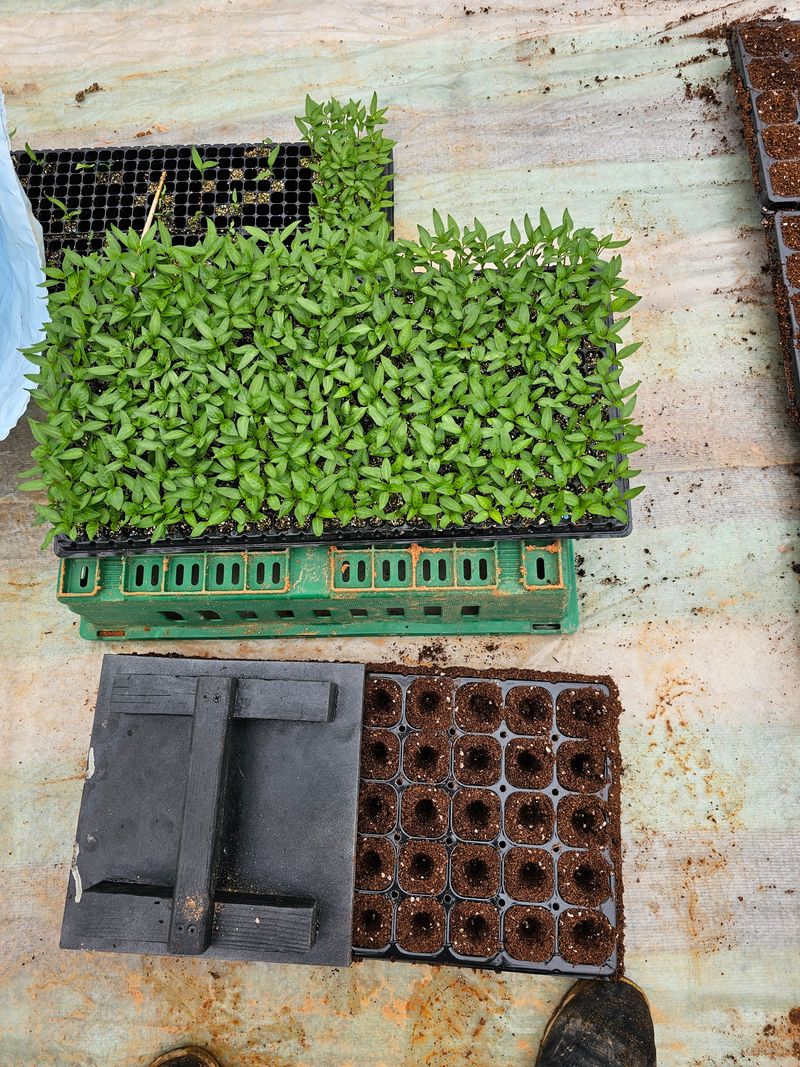 노지고추 2천주는 406구 이식묘를 50구 연결포트에 이식, 시설재배용 꽈리고추1,500주는 1월파종한것을 50구 연결포ㅌ에 이식 후 8일차