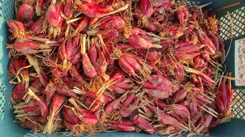어제 마운틴양파(바왕다약) 수확했어요. 얘도 양파라고 수확할때가 되니 쓰러지네요. 약성이 좋아 5~6년 전부터 재배해오고 있는데 병충해가 없어 무농약으로 재배하기 좋은 작물인거 같아요.