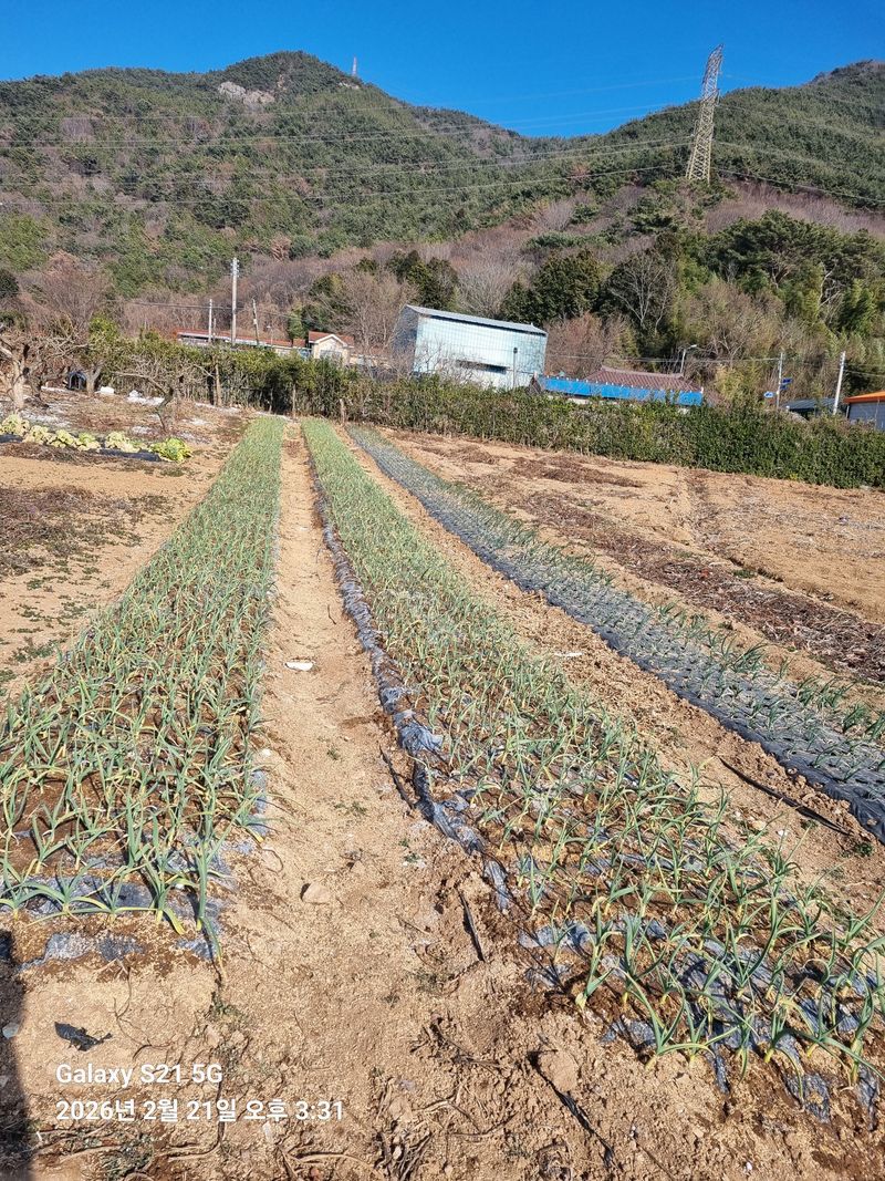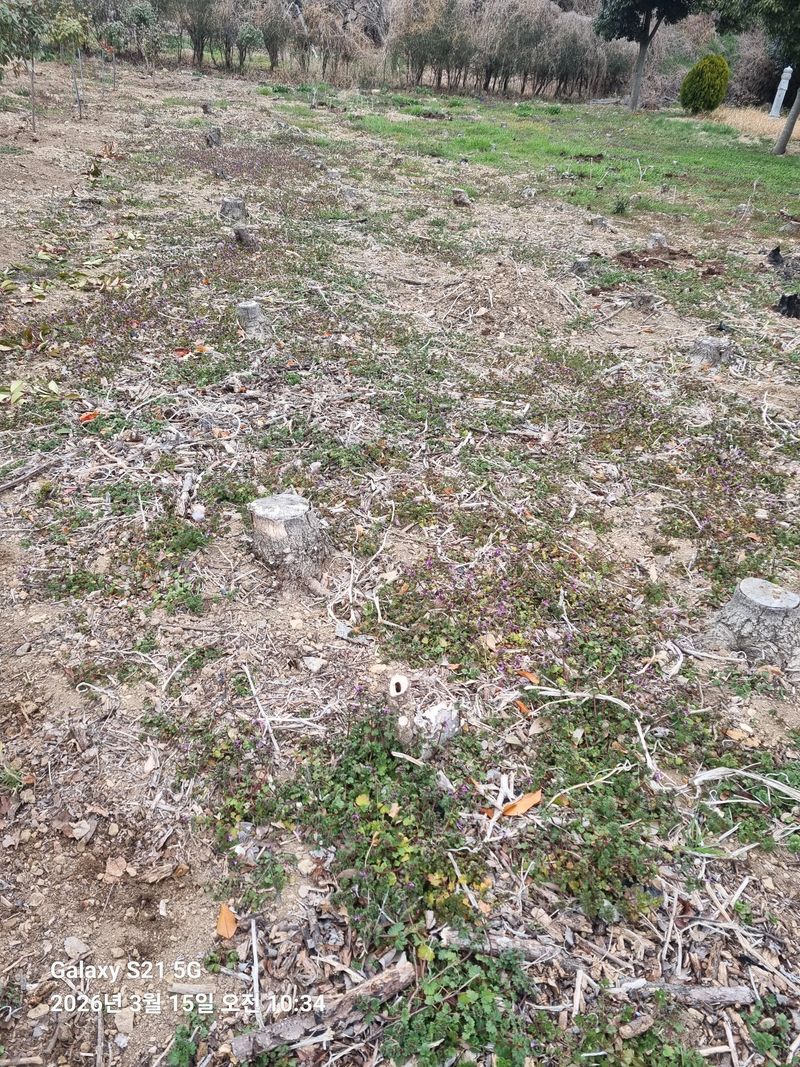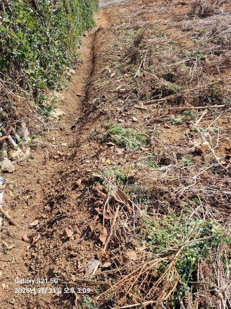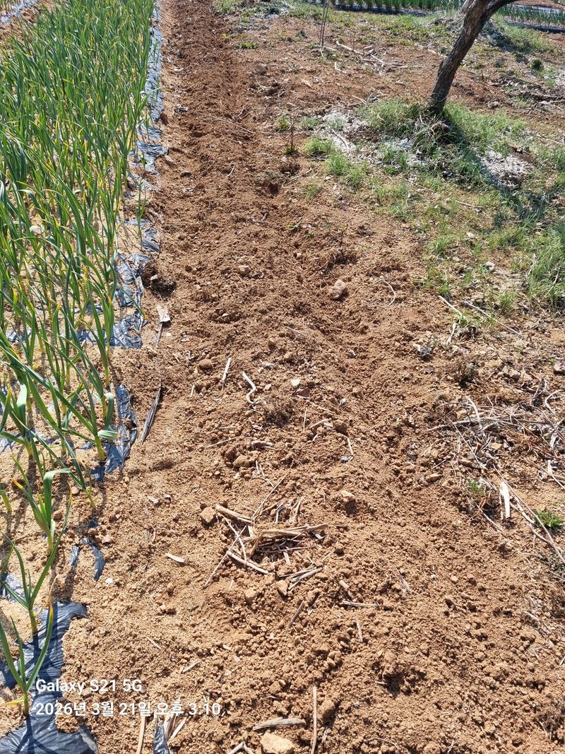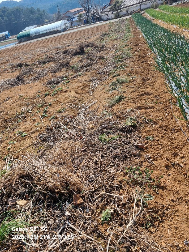 고구마줄기밭에 고루깔고 밭갈이준비함