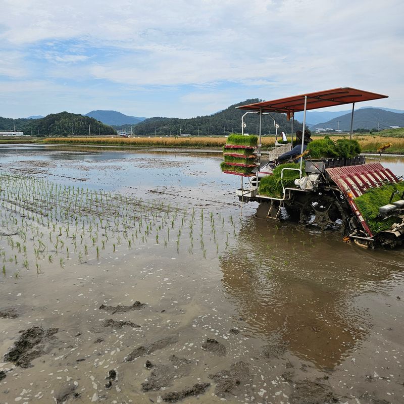 백옥찰벼 모심음.
