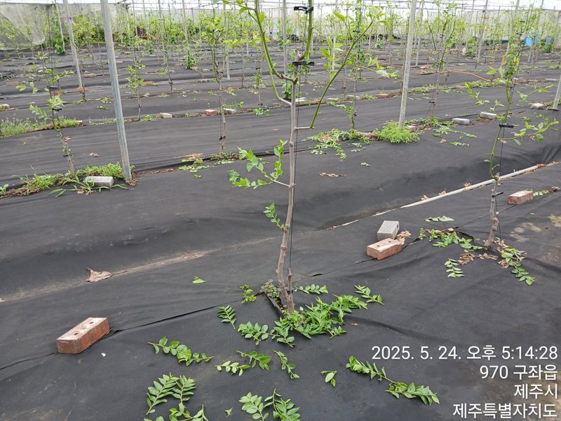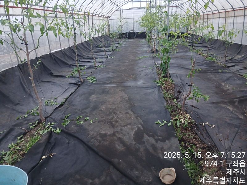 오후에 비가오네 오전은 제초매트 펴는 작업했다 영양제2통,퇴비차,이롬 관주