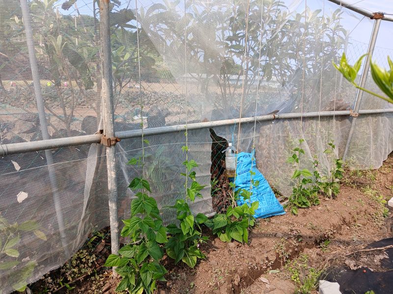 EM 퇴비차,영양제 작업 제초매트,호랑이넝쿨강낭콩 지주대 작업