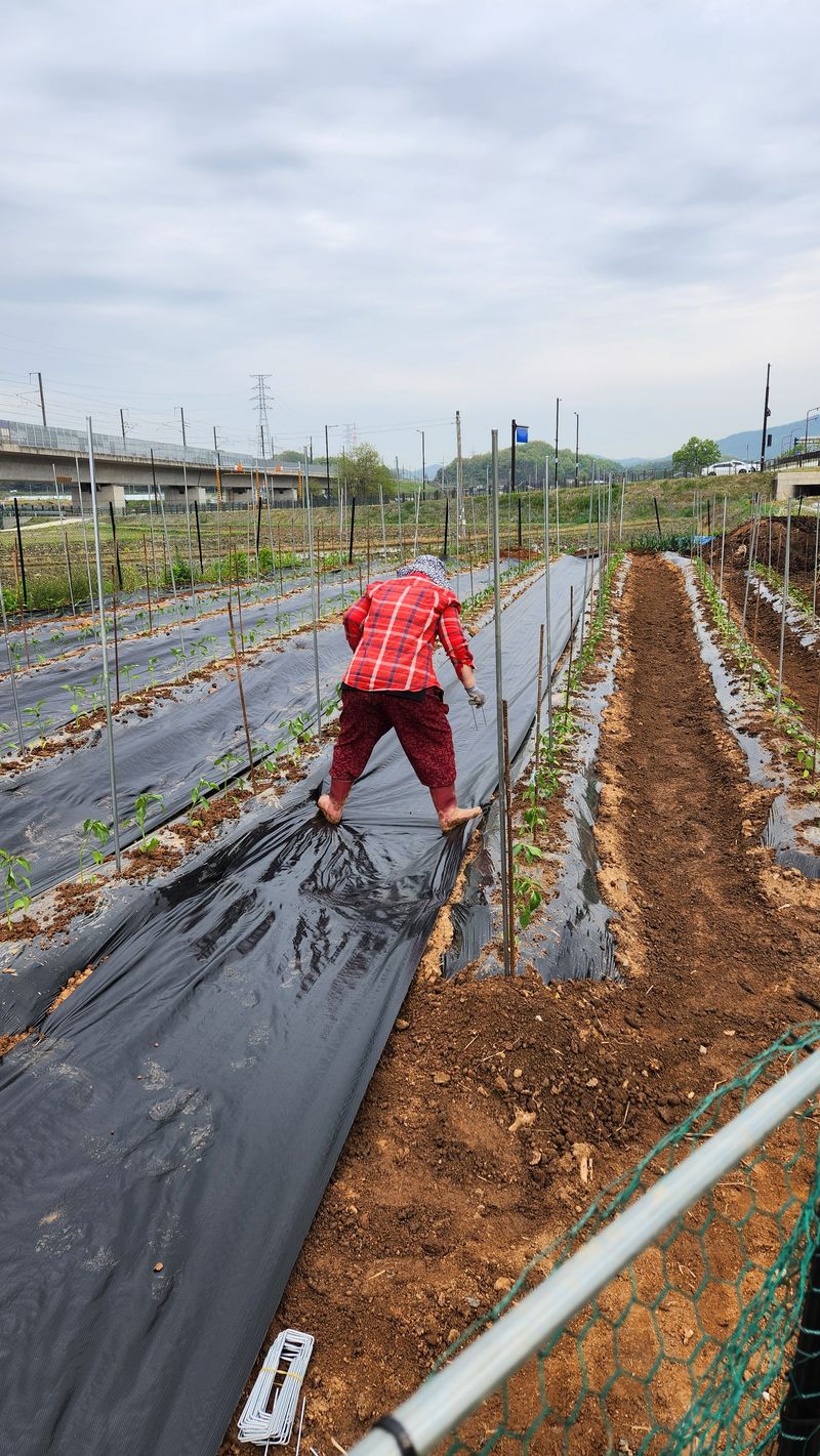 거름뿌리기 복합비료 진듸기약 로타리치기 두둑내기 비닐덮기