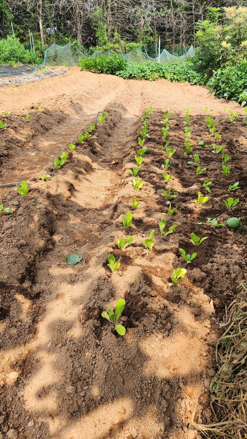 ●배추심기 밭갈고 ■퇴비.비료.붕사.살충제.살균제 모종이식후 ■1차모종에서 2주후 10센치띠워서 NK비료주고. ■다시2주후 고랑에2차추비