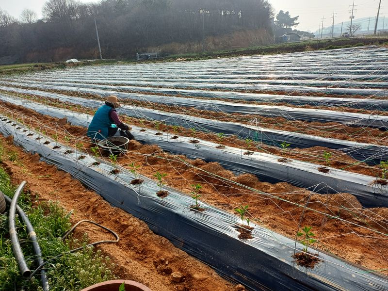 고추 2300개 터널재배 정식 1. 칼라탄골드 1200개 2. S03 300개 4. ABS19 300개 5. 넘버 9 200개 6. 싹~따 200개 7. 청양고추 100개 7종류를 일라이트부직포 터널 재배로9~10일 이틀간 심었습니다. 바람은 태풍급으로 불고, 짧은...