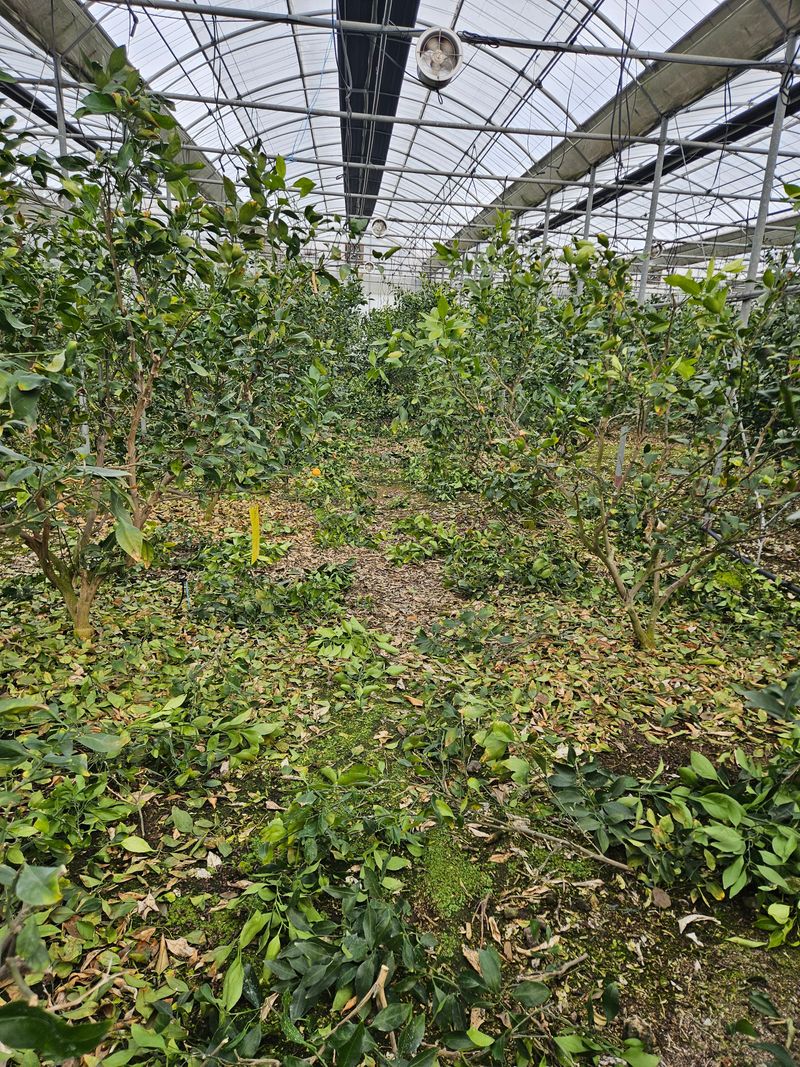오늘 레드향전지전정 마무리하고 오후부터는 블루베리 꽃적과 시작하였습니다