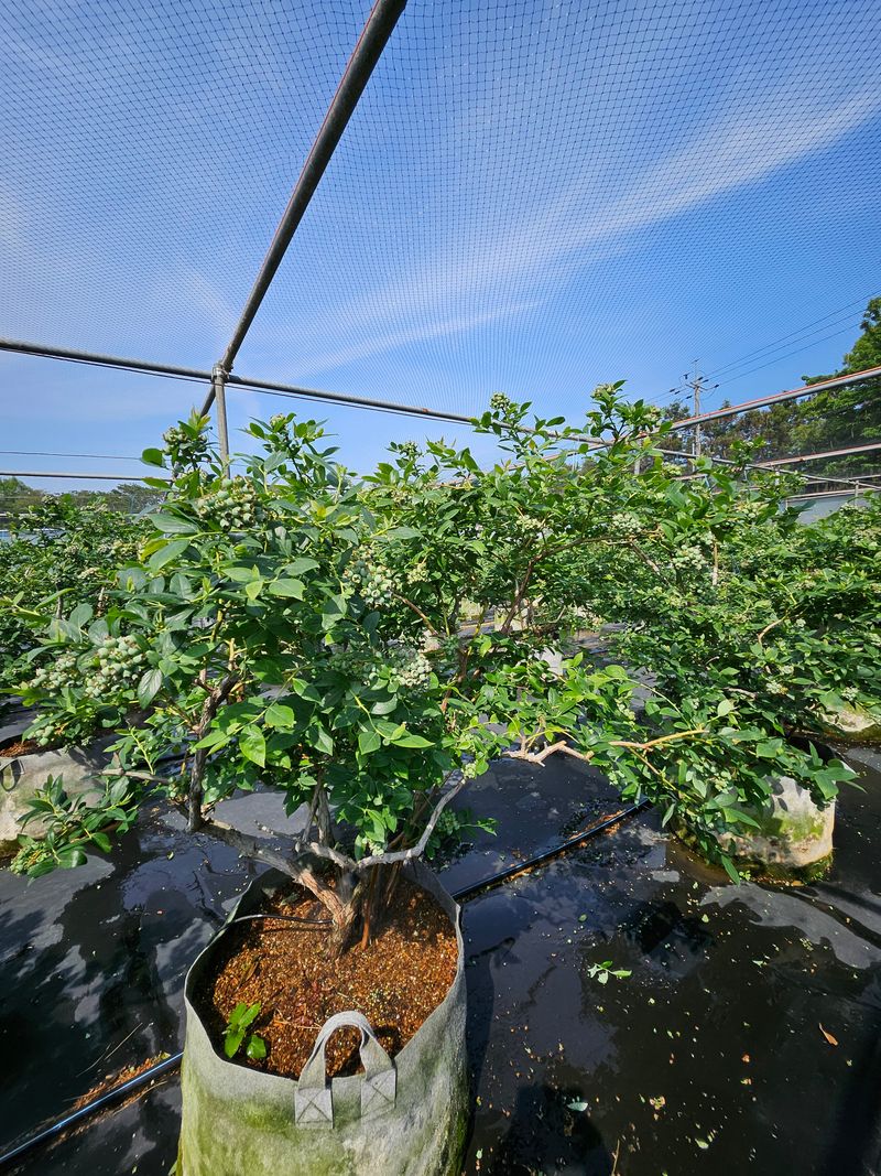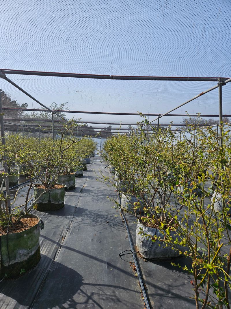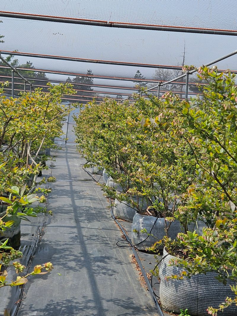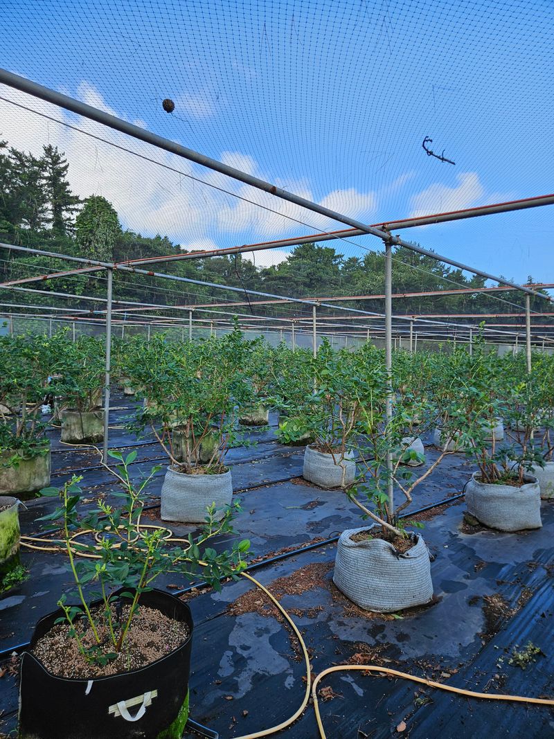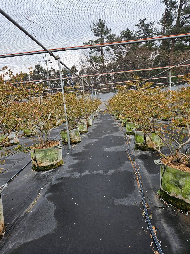 블루베리 꽃털어주고 물주기 병해충방재 바닦쓸기까지 땀이줄줄 하였어요 레드향 물주기와 노지베리 옆면시비까지