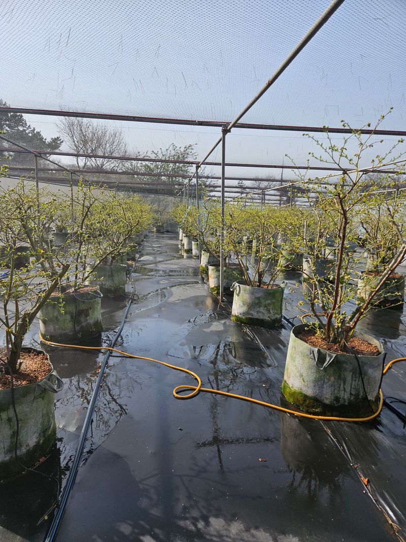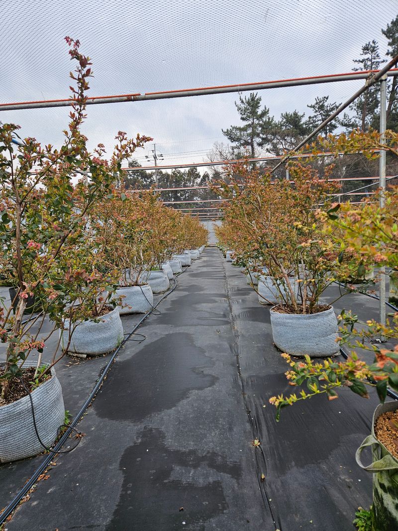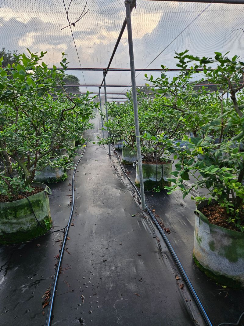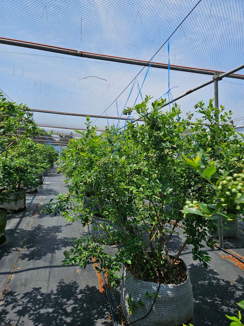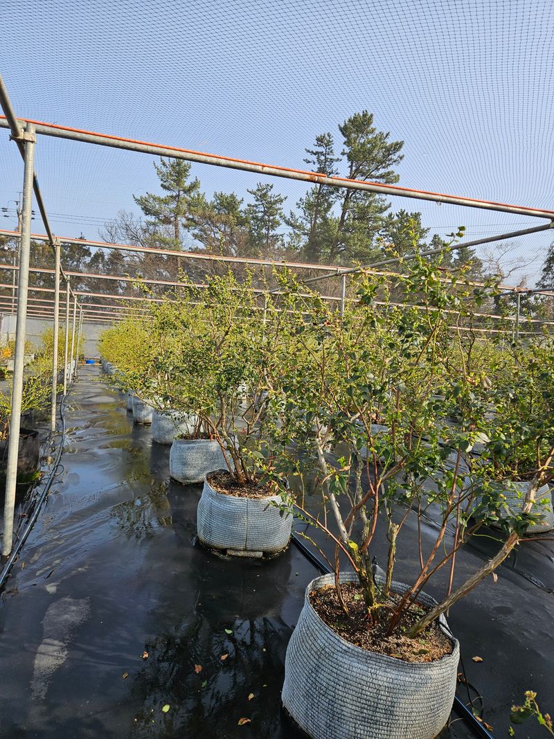 블루베리 꽃털어주고 물주기 병해충방재 바닦쓸기까지 땀이줄줄 하였어요 레드향 물주기와 노지베리 옆면시비까지