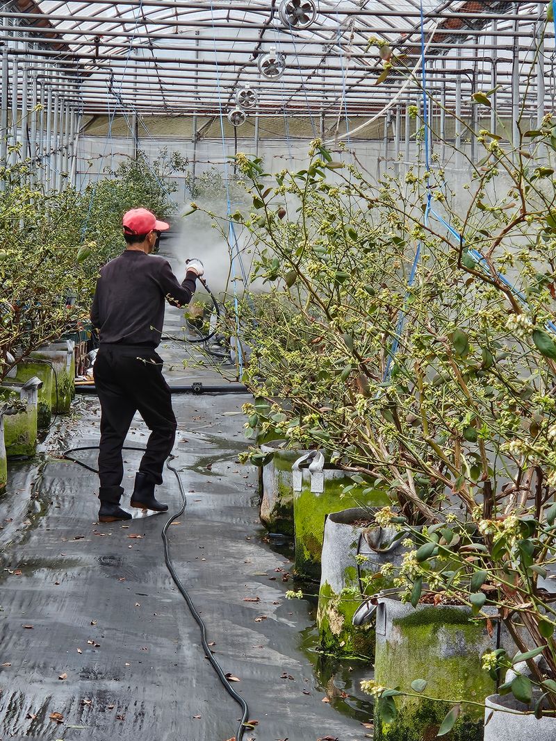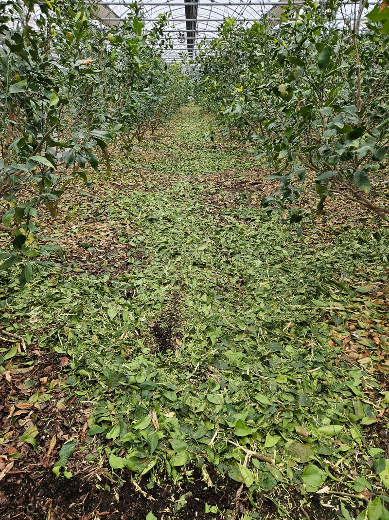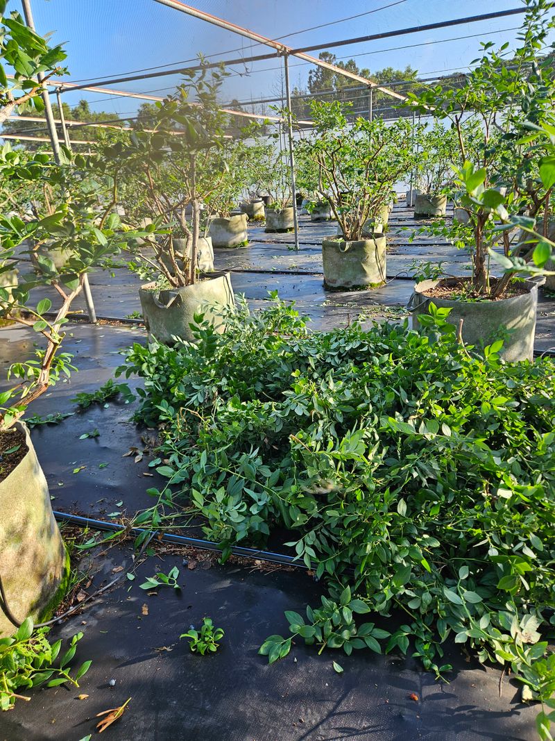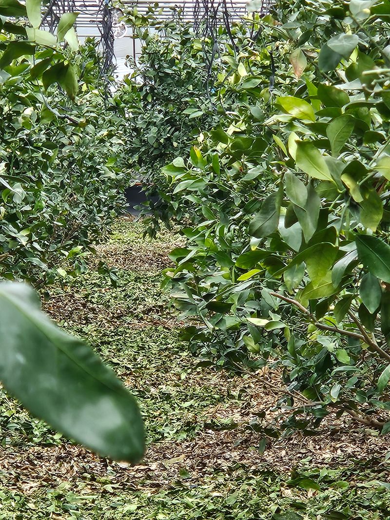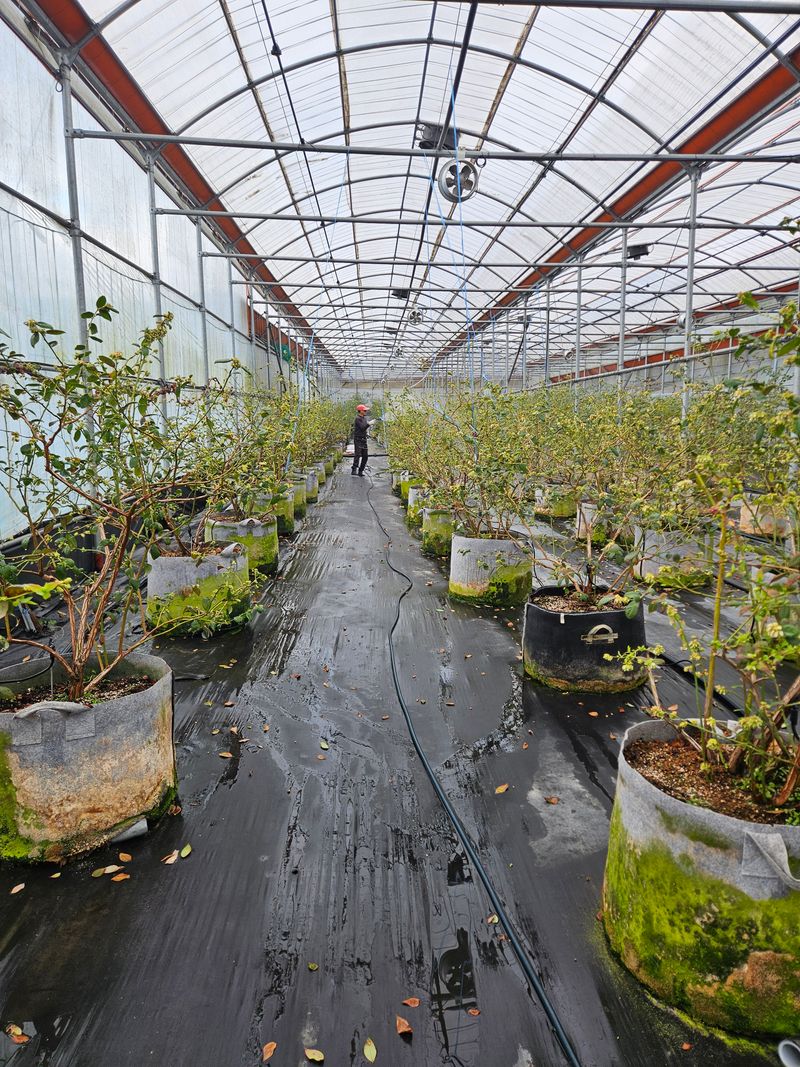 블루베리 꽃털어주고 물주기 병해충방재 바닦쓸기까지 땀이줄줄 하였어요 레드향 물주기와 노지베리 옆면시비까지