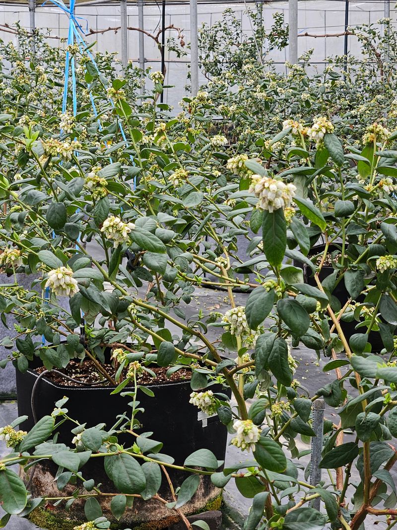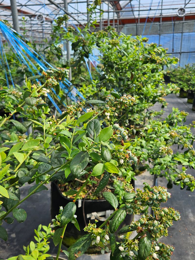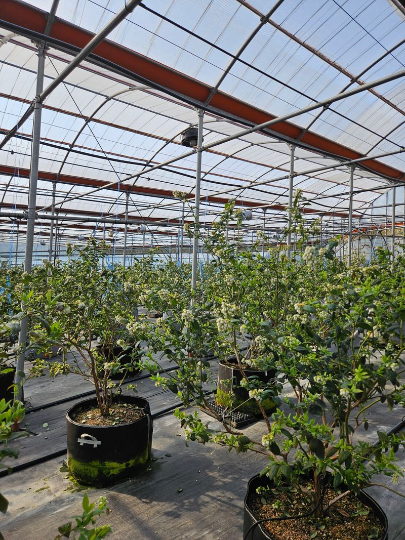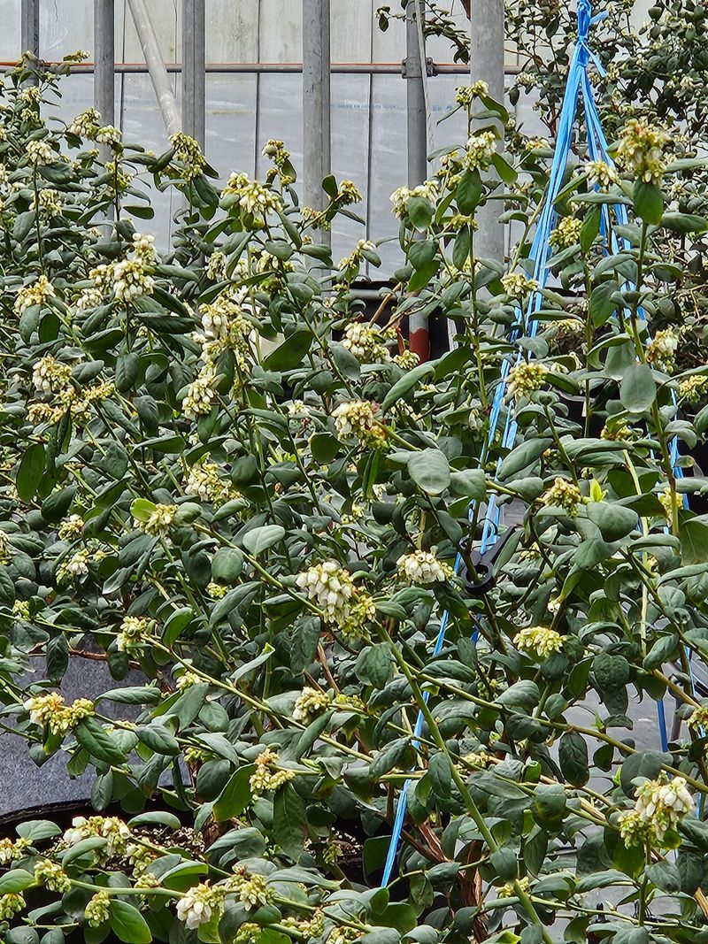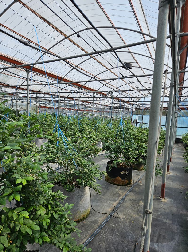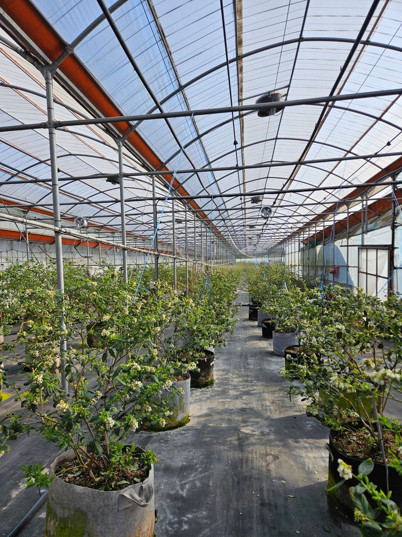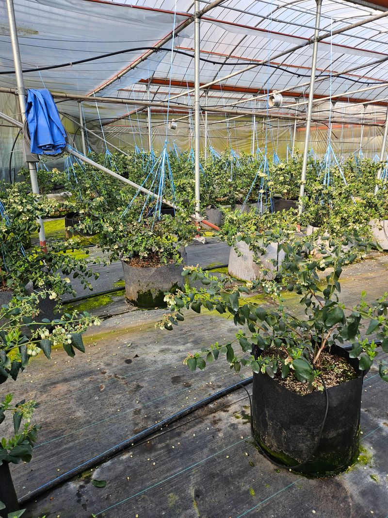 블루베리 꽃적과하면서 늘어진가지 매달다 하우스안온도가30도를 오르내리니 너무더워 나왔어요