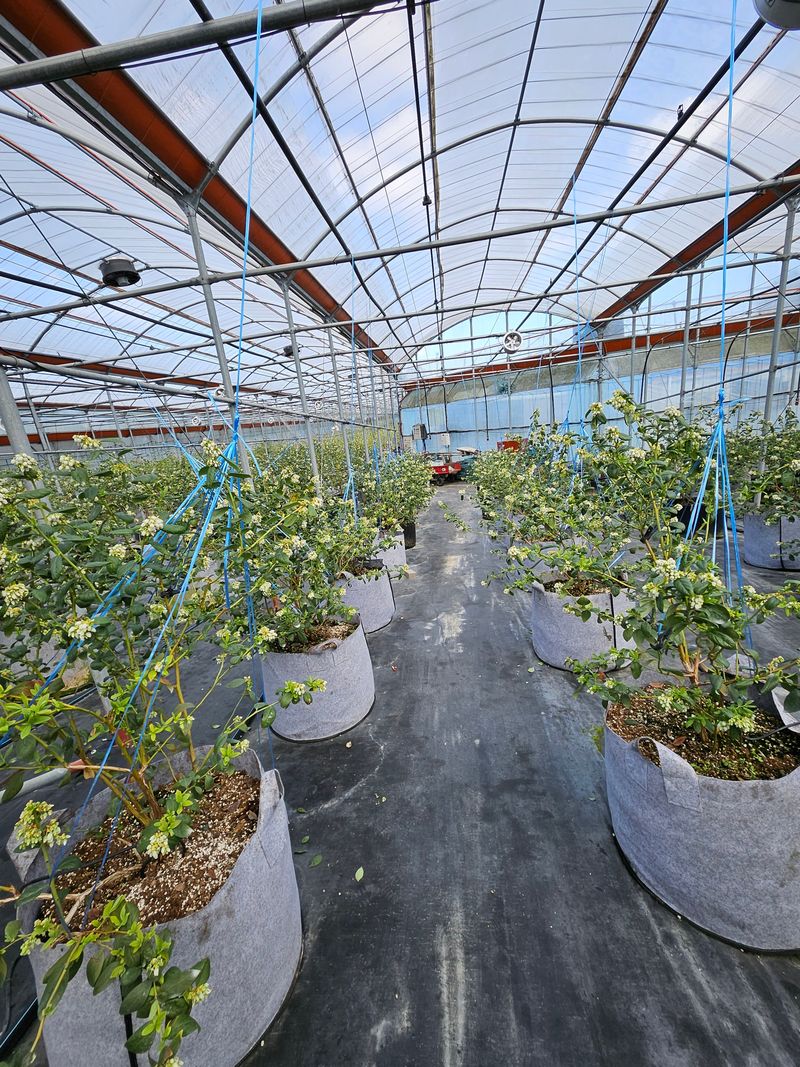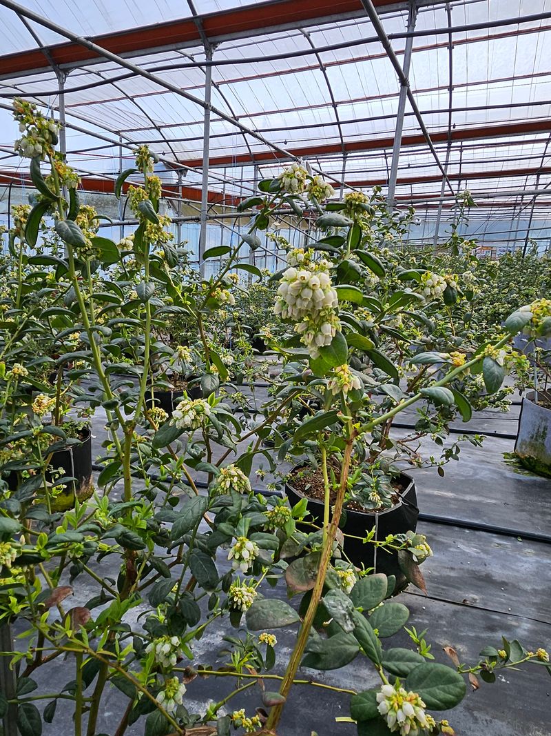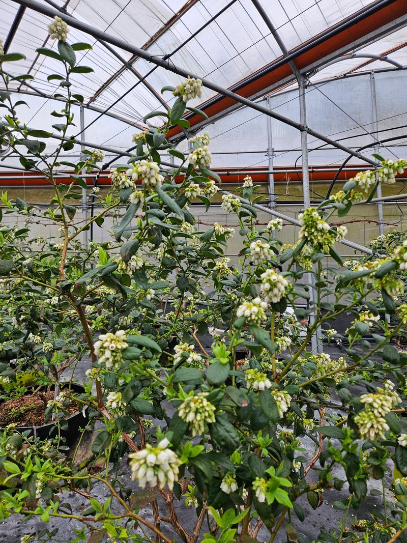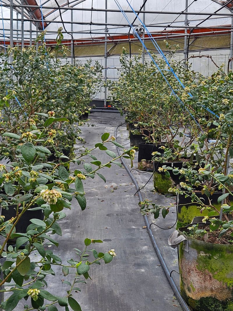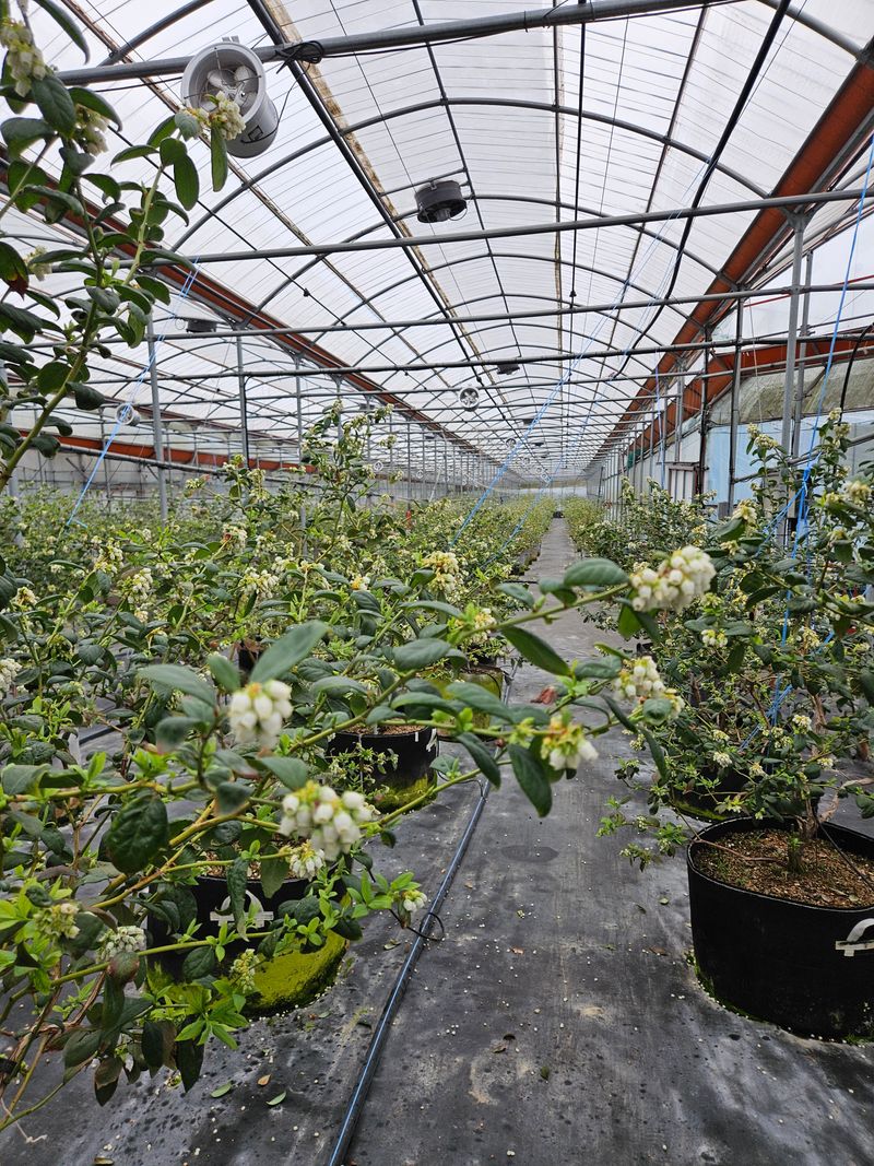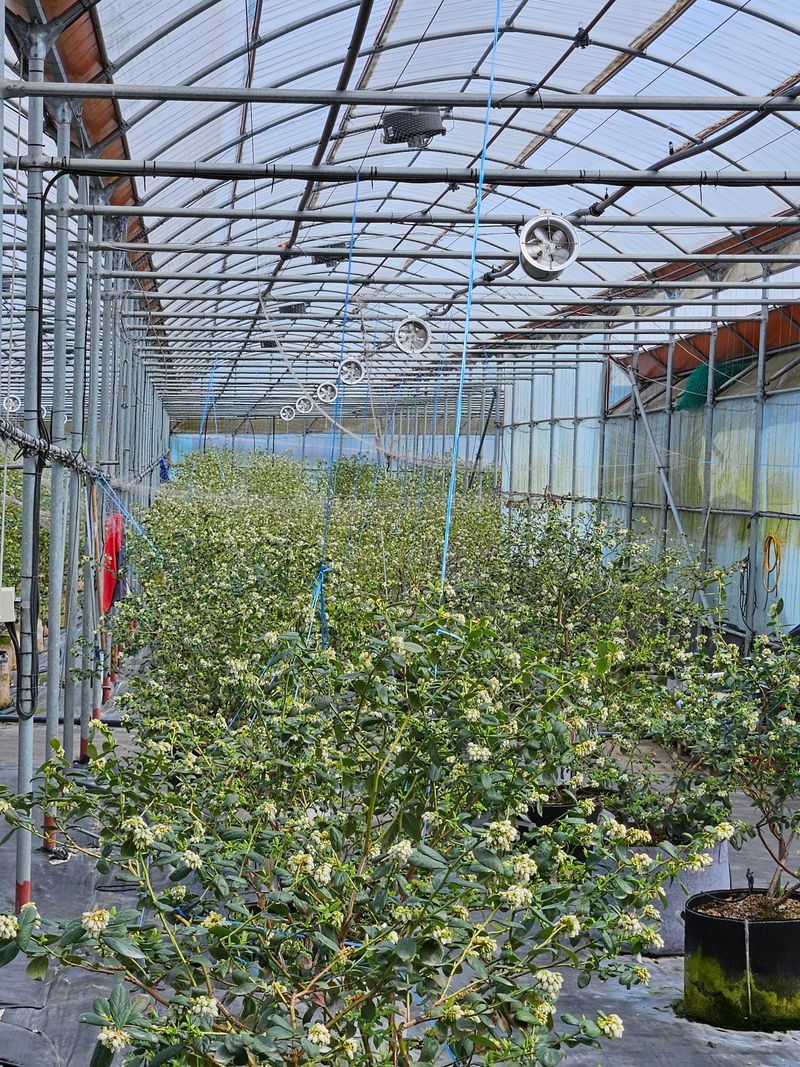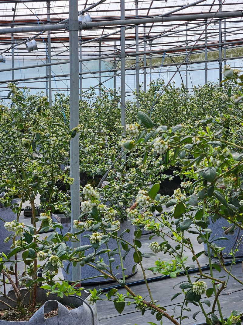 블루베리 꽃적과하면서 늘어진가지 매달다 하우스안온도가30도를 오르내리니 너무더워 나왔어요