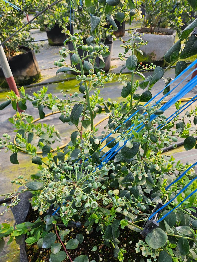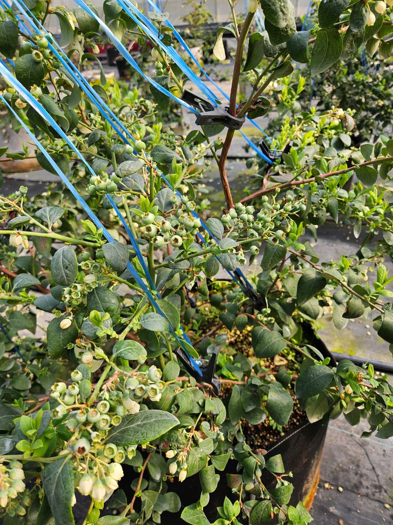 블루베리 아침일찍 베리꽃털고 늘어진 가지 매달기 하였어요