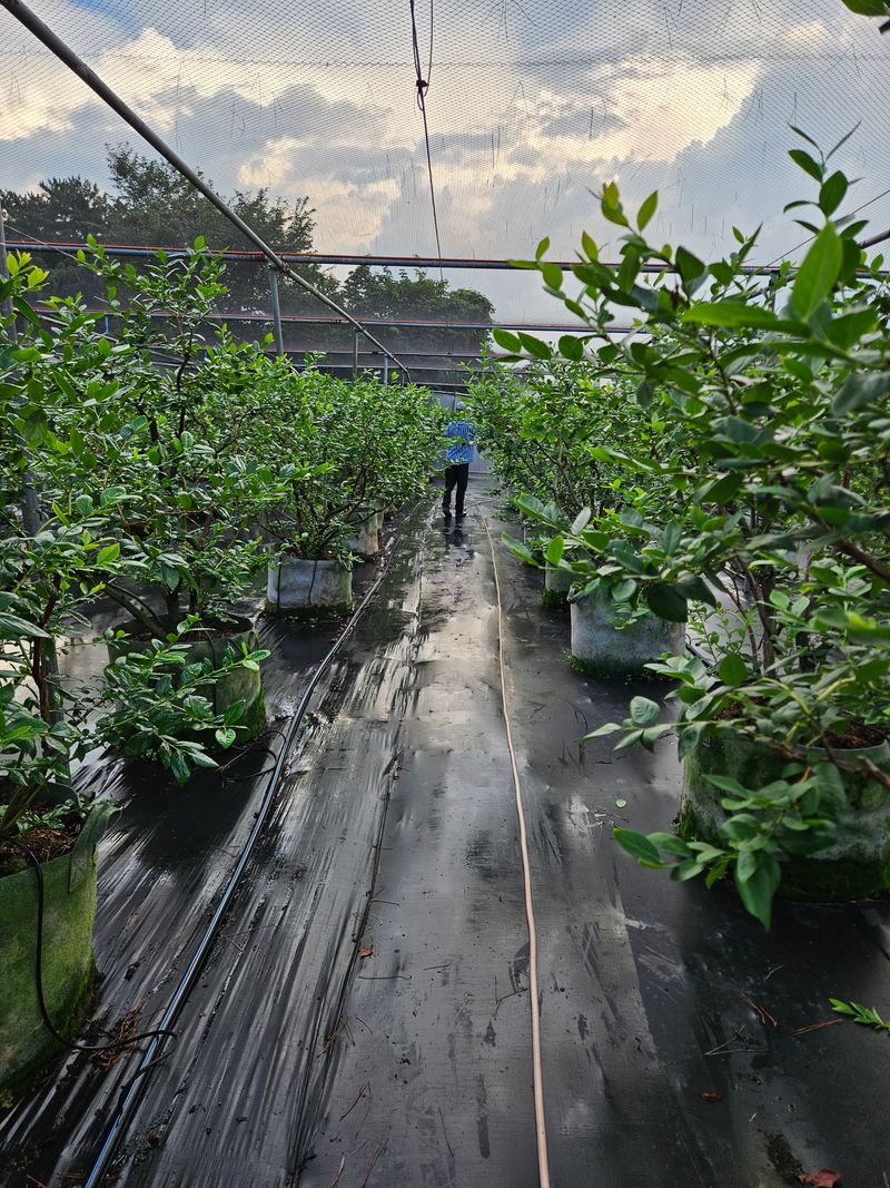 오늘 노지블루베리 총채방재약 뿌렸는데 한시간도 안되어 엄청 비가 많이 내려버렸어요
