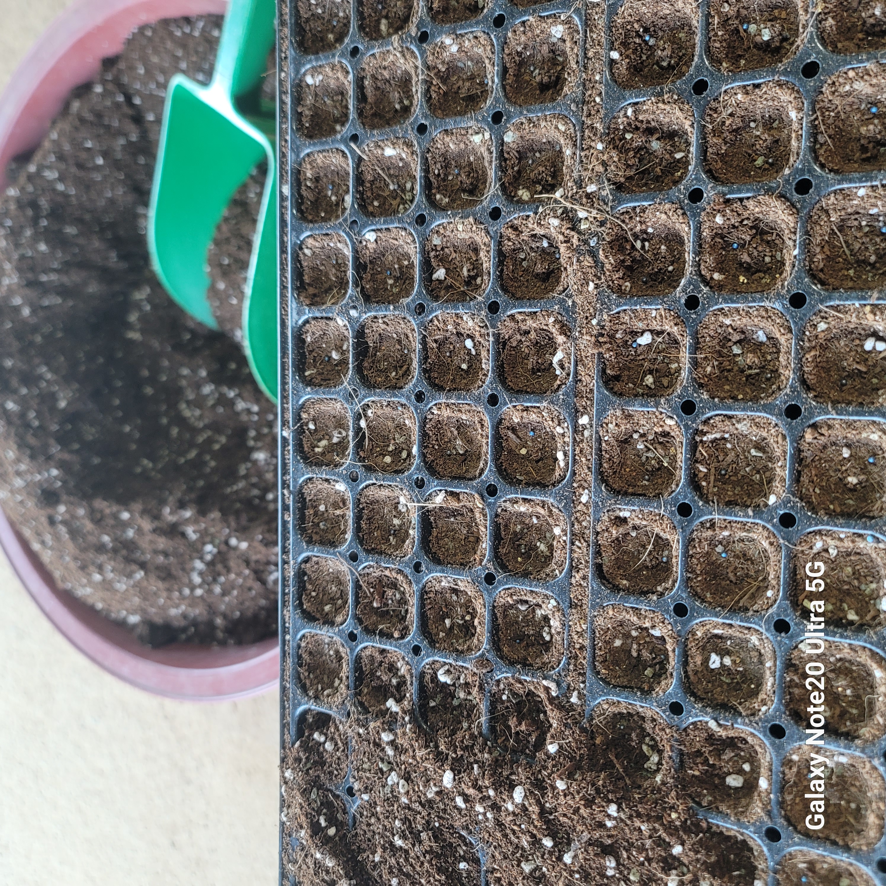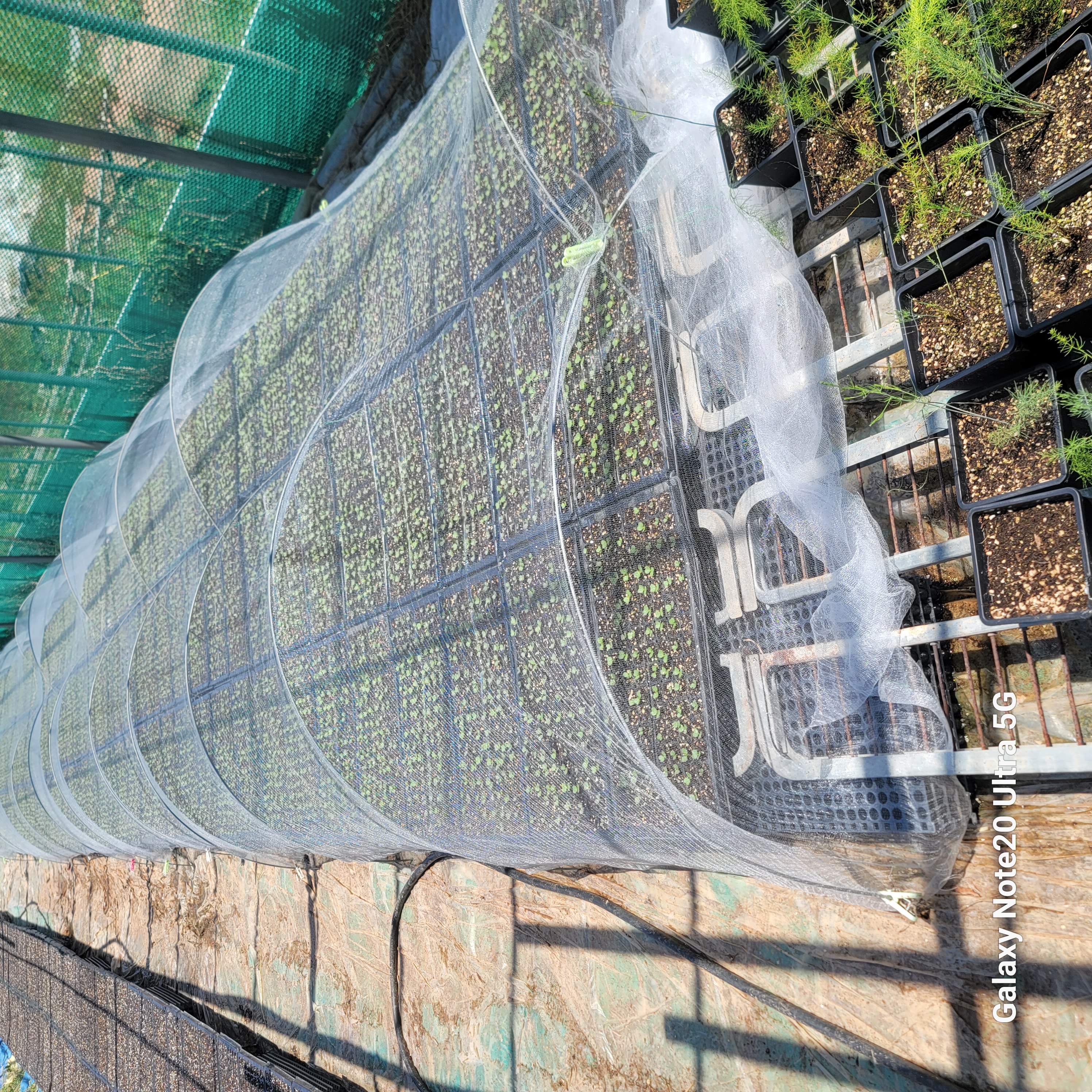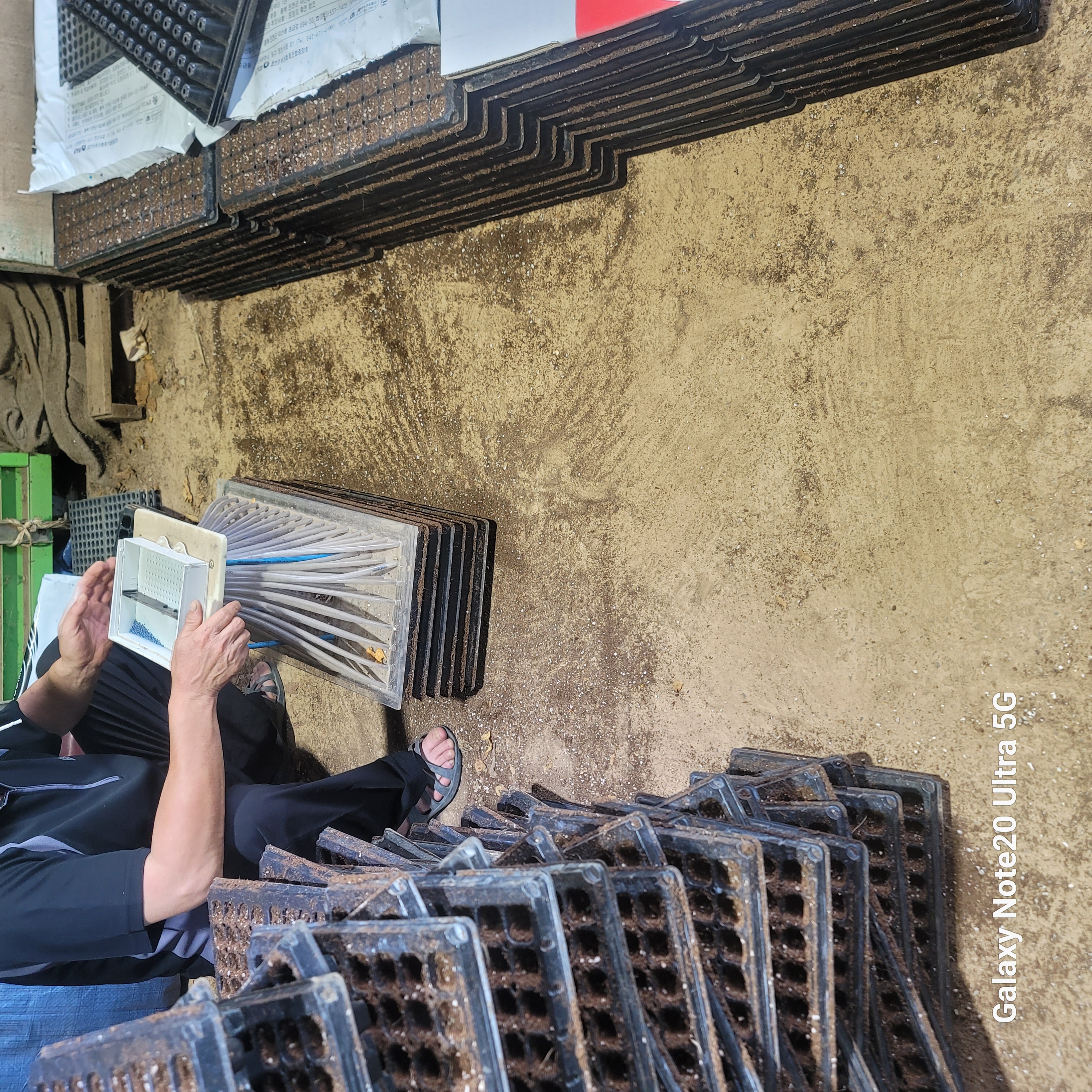 파종후 재워둔 배추 트레이 바닥깔고 물주기