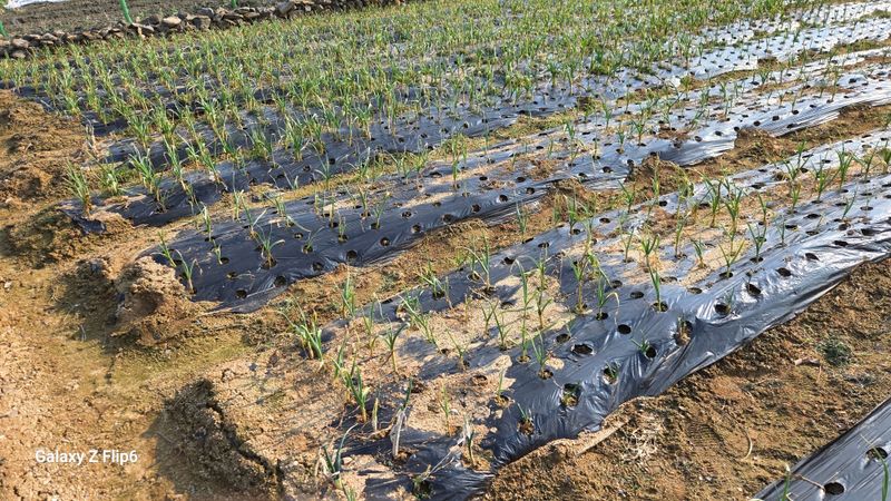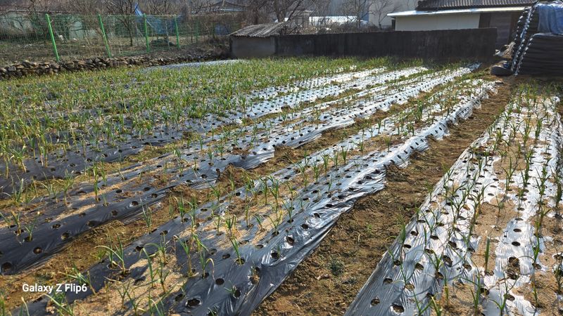 마늘 밭 풀 작업 마늘 잎이 이상 하네요