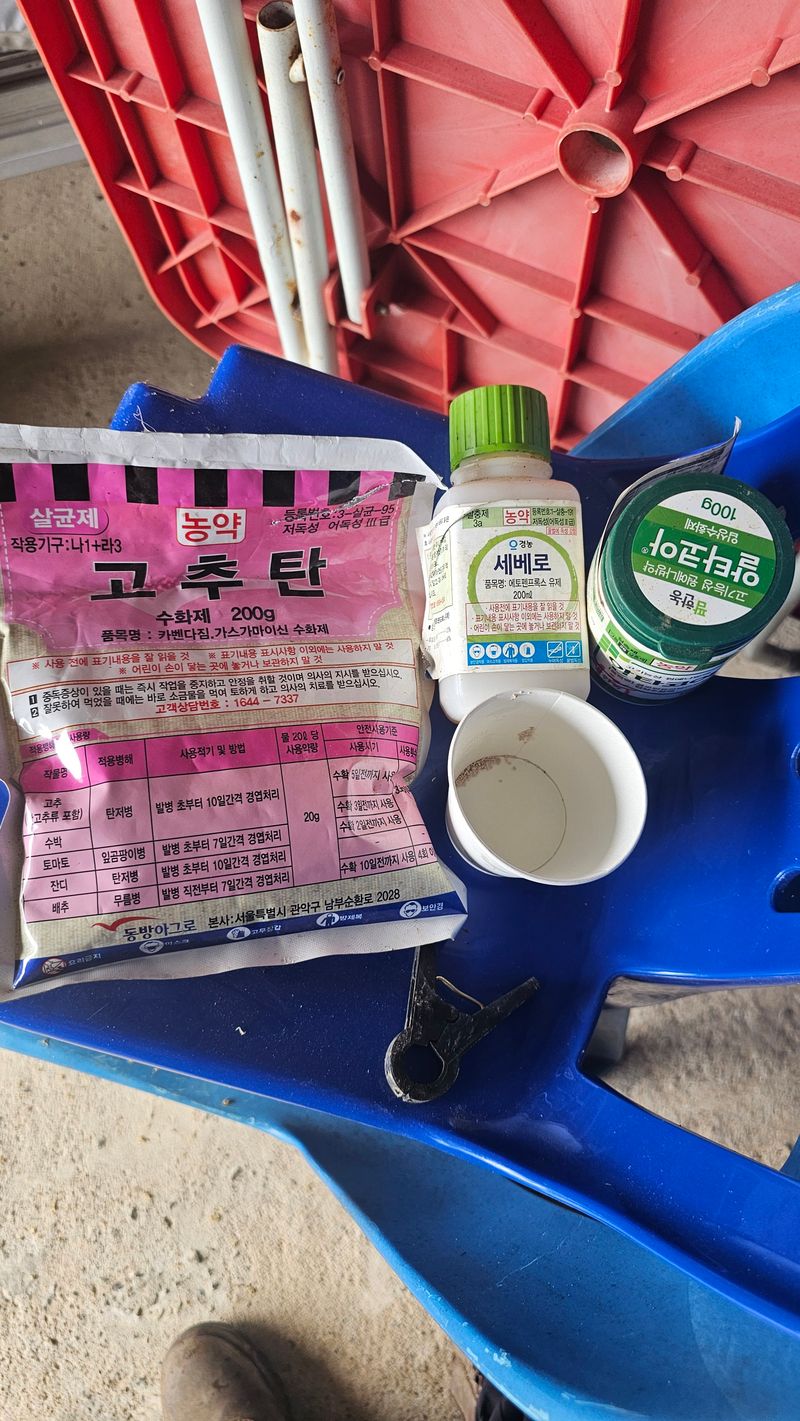 고추수확 2 바구니 정도 고추 약침(탄저 담배나방 영양제)
